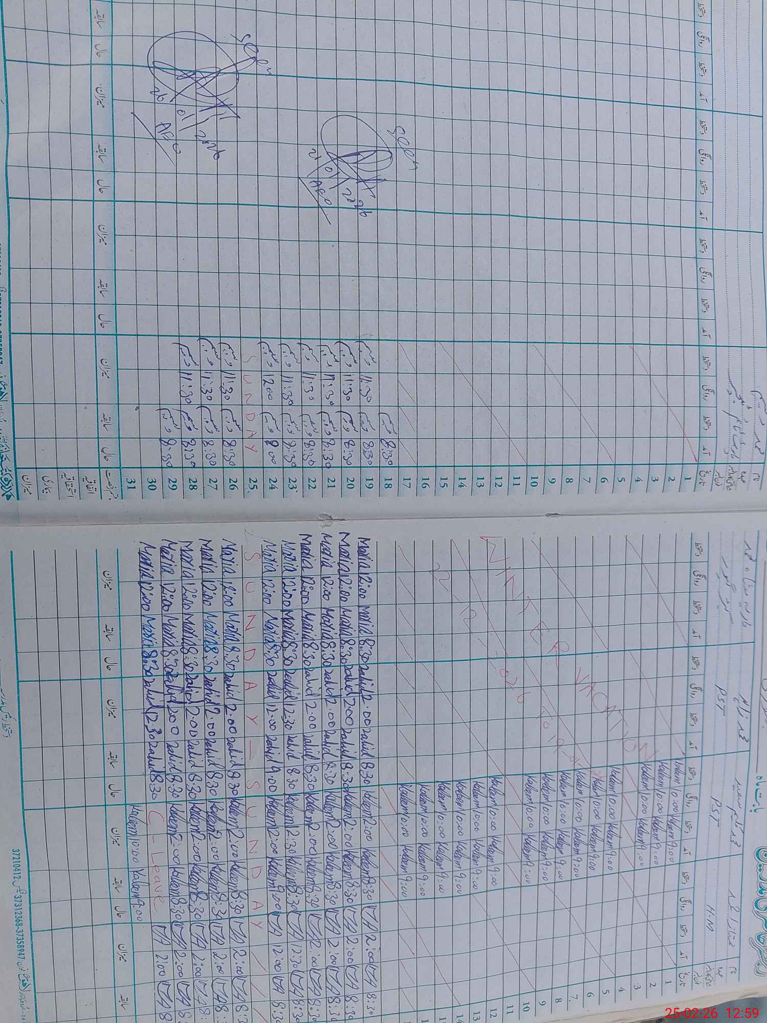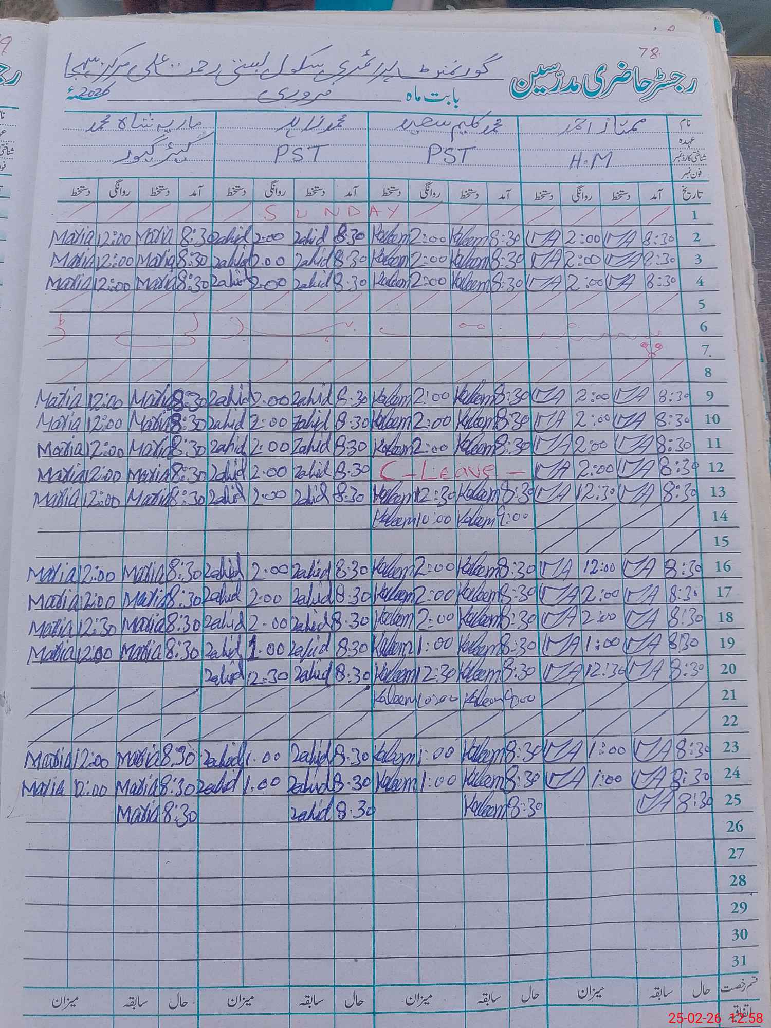 | CNIC | Full Name | Designation | R/C | Absence During Last Calender Month |