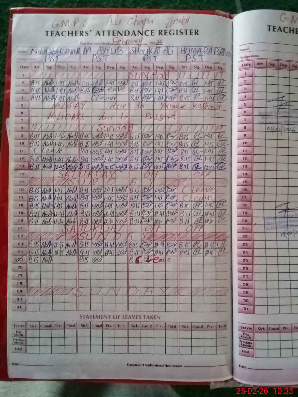 | 36**** | Sh**** Al**** | PST Arts | Regular | 0 | 0 | 0 | 0 | 0 | 0 | 0 | 0 | 0 | Casual |