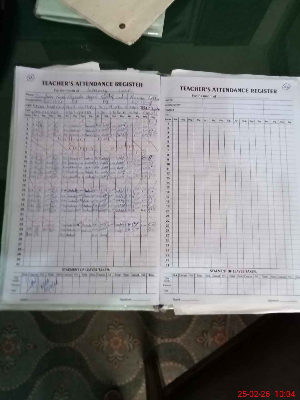 | 34**** | Sa**** Na**** | SST (Drawing) | Regular | 0 | 0 | 0 | 0 | 0 | 0 | 0 | 0 | 0 | Absent (Un-Authorized) |
