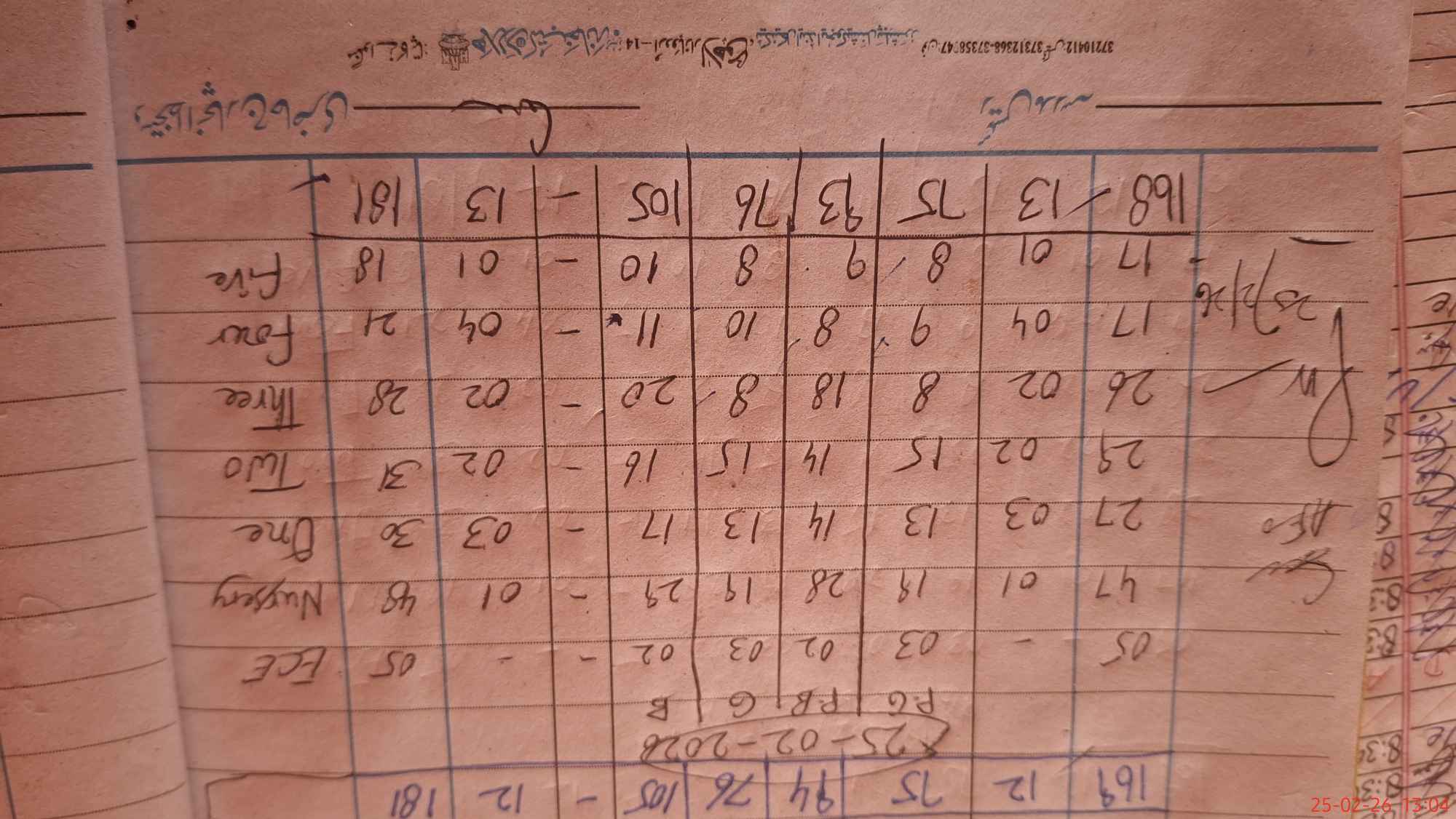 | No. of Students Present - Female | 0 | 3 | 13 | 15 | 8 | 9 | 8 | 75 | ||||||||