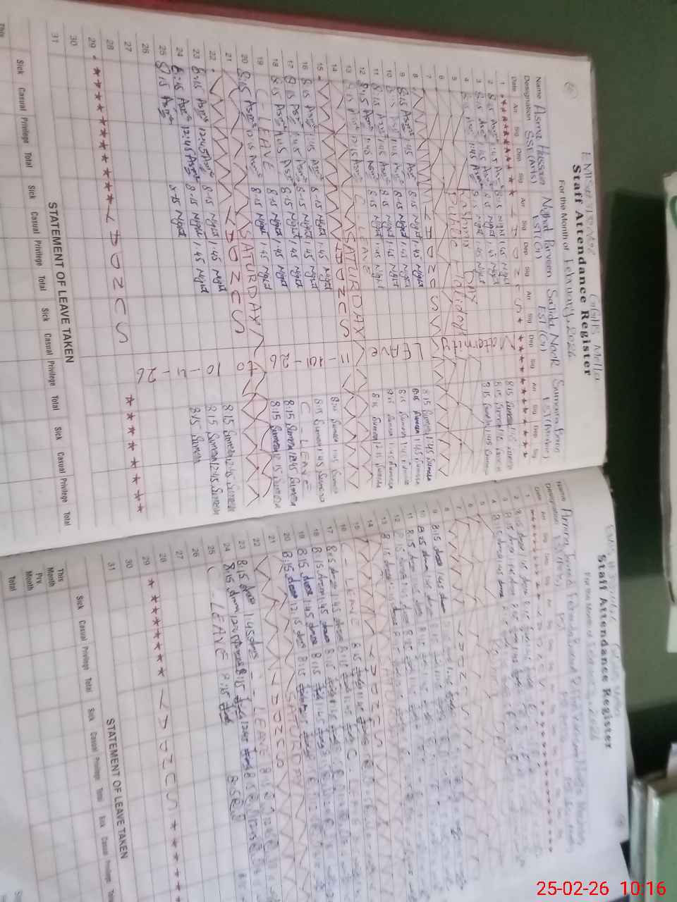 | Leave | Duty | Absent | Maternity | Medical | Ex- Pak |