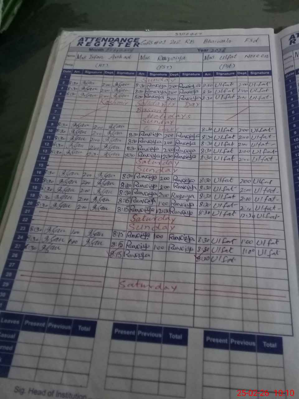 | Leave | Duty | Absent | Maternity | Medical | Ex- Pak |