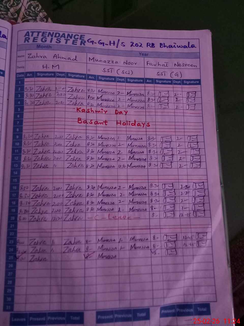 | Leave | Duty | Absent | Maternity | Medical | Ex- Pak |