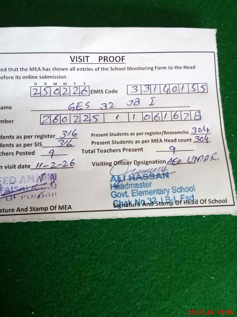 | EMIS Code: 33140155 | Name of School: GES CHAK 32 JB I | |||