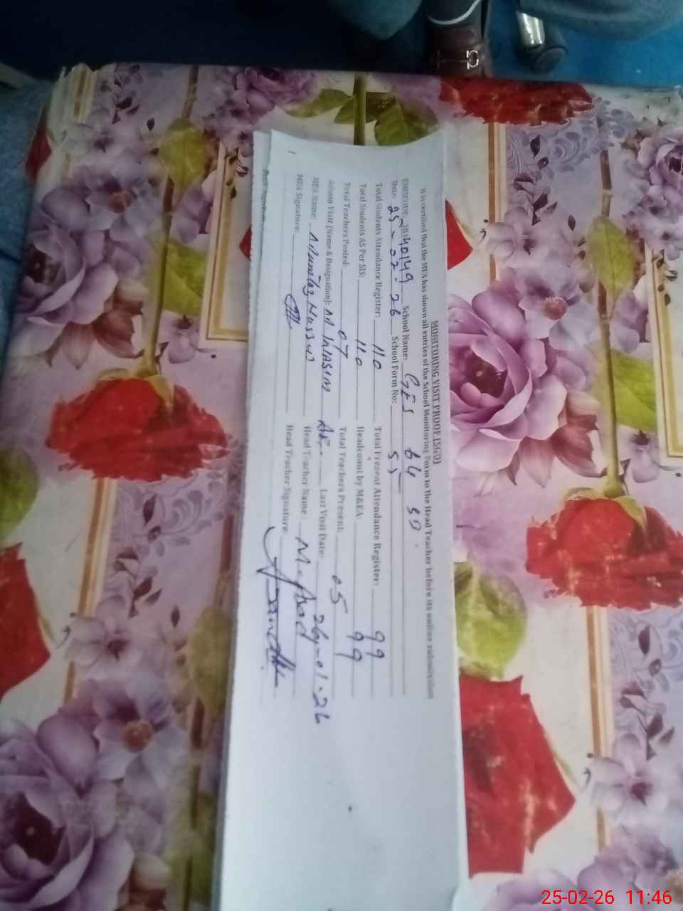 | Certified that this School was Inspected by the Undersigned MEA/DMO Today and the Information Stated Above is as Per Record. | |||||