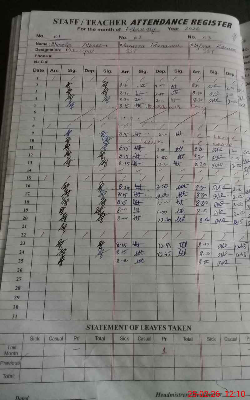 | 35**** | Su**** Gh**** | PST Science/Maths | Regular | 0 | 0 | 0 | 0 | 0 | 0 | 0 | 0 | 0 | Casual |