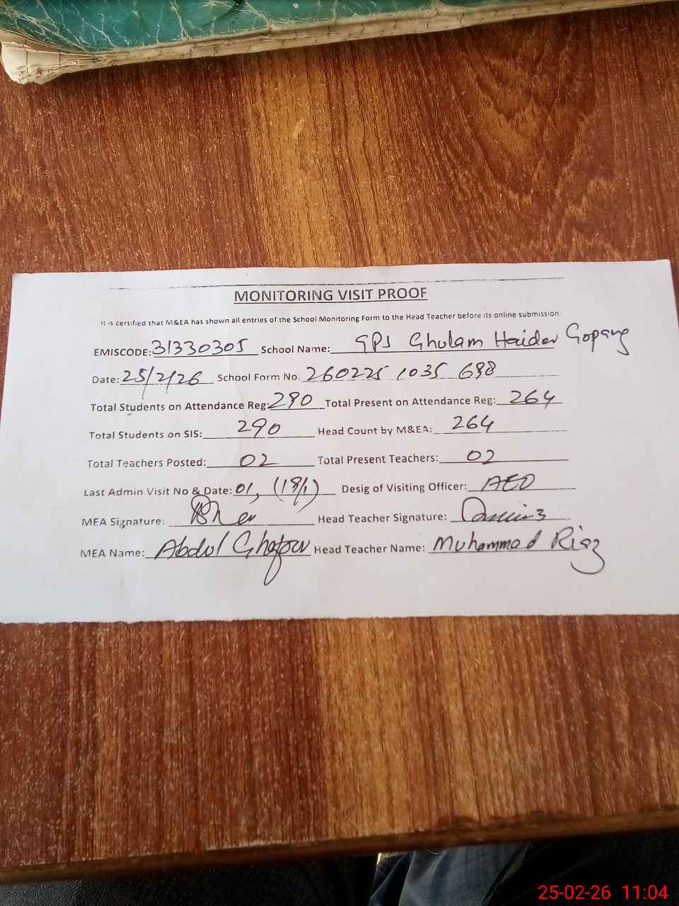 | EMIS Code: 31330305 | Name of School: GPS GHULAM HAIDER GOPANG | |||