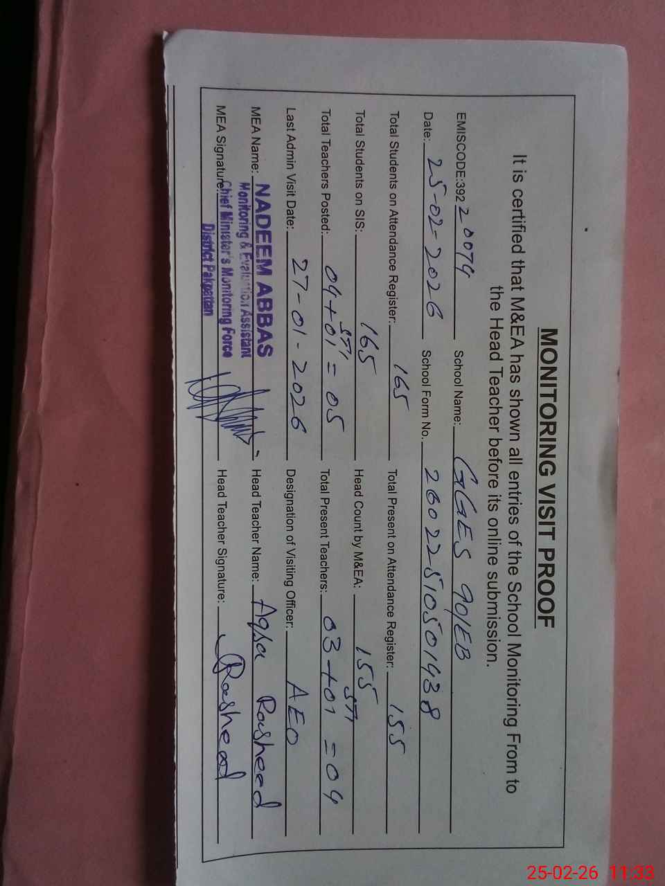 | Certified that this School was Inspected by the Undersigned MEA/DMO Today and the Information Stated Above is as Per Record. | |||||