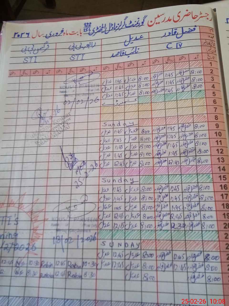 | CNIC | Full Name | Designation | R/C | Absence During Last Calender Month |
