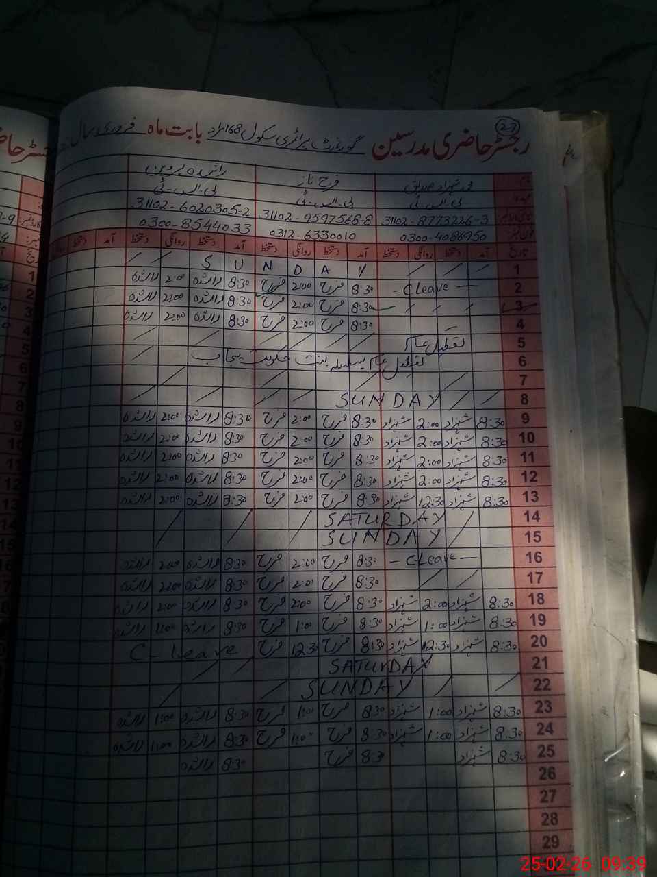 | Name: MSh**** Sa**** Designation: (School Headmaster's/Headmistress's) PST Phone/Cell Number: 03**** |