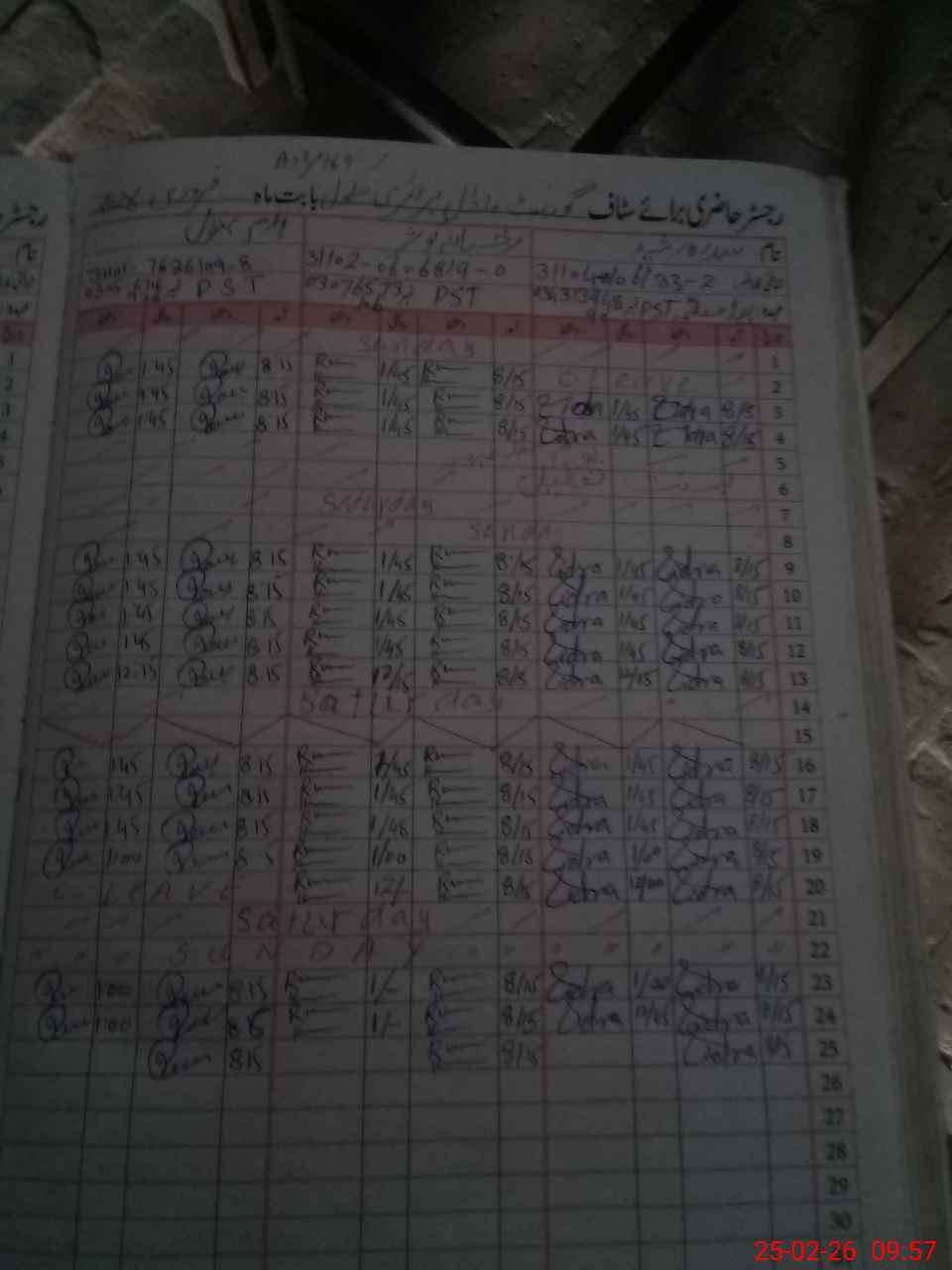 | CNIC | Full Name | Designation | R/C | Absence During Last Calender Month |