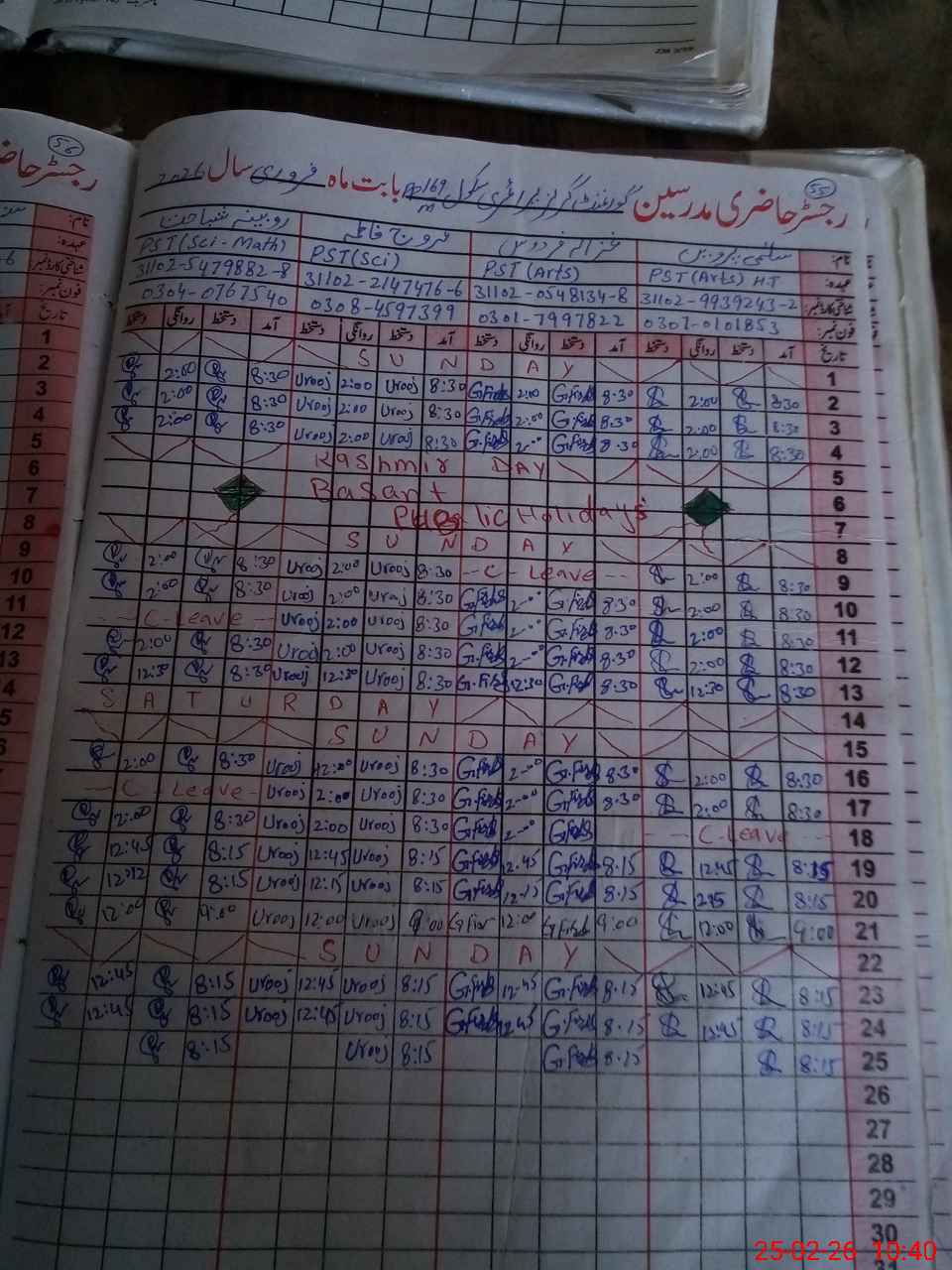 | Leave | Duty | Absent | Maternity | Medical | Ex- Pak |
