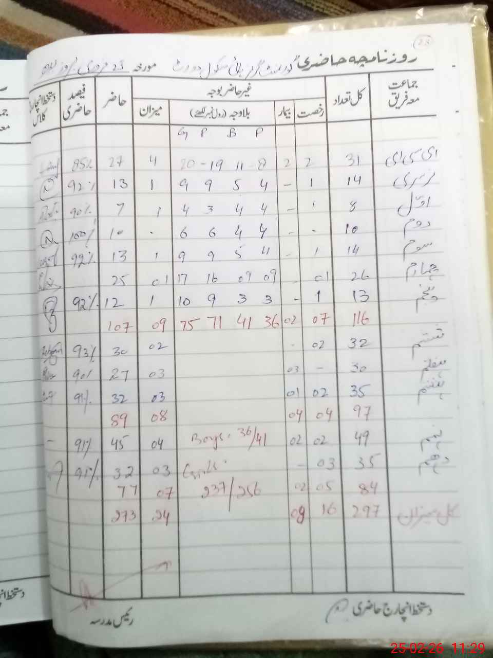 | No. of Students Present - Female | 0 | 19 | 3 | 6 | 9 | 16 | 9 | 30 | 27 | 32 | 45 | 32 | 237 | |||