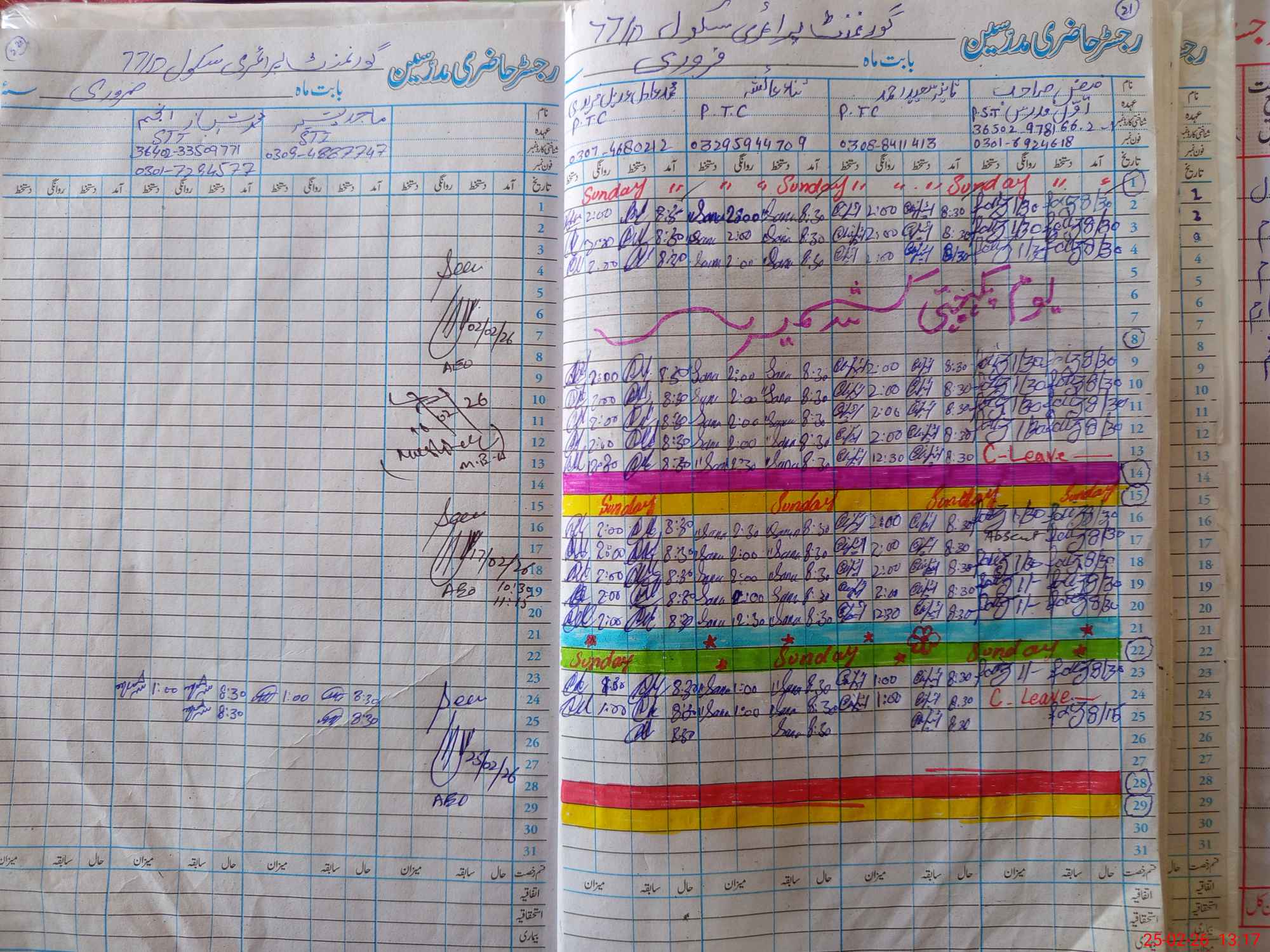 | CNIC | Full Name | Designation | R/C | Absence During Last Calender Month |