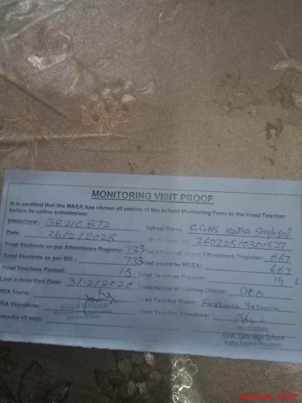 | EMIS Code: 38210872 | Name of School: GGHS KATHA SAGHRAL | |||