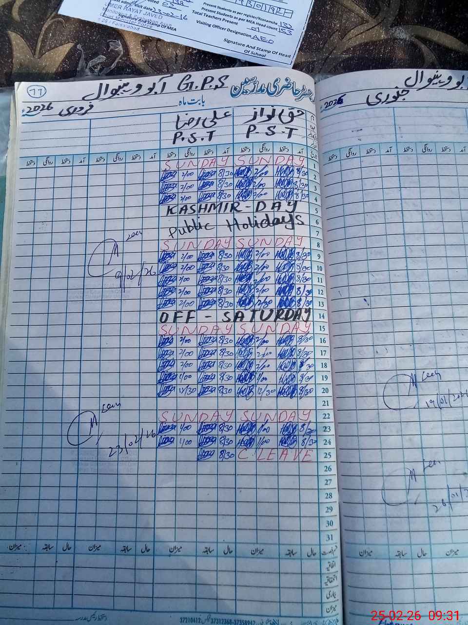 | Name: HA**** NA**** Designation: (School Headmaster's/Headmistress's) PST Phone/Cell Number: 03**** |