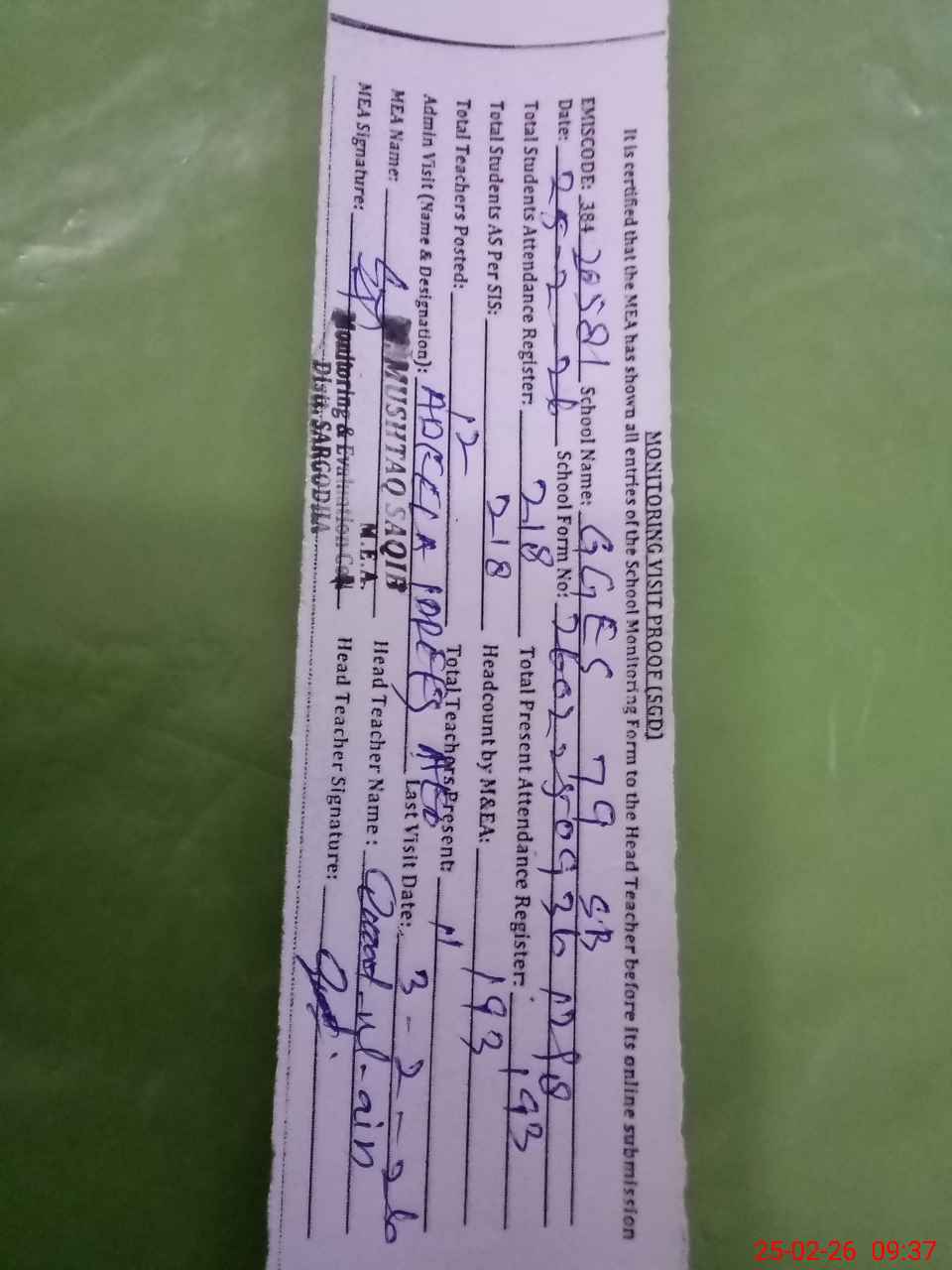 | EMIS Code: 38420581 | Name of School: GGES CHAK NO.79 SB CHAUKERA | |||