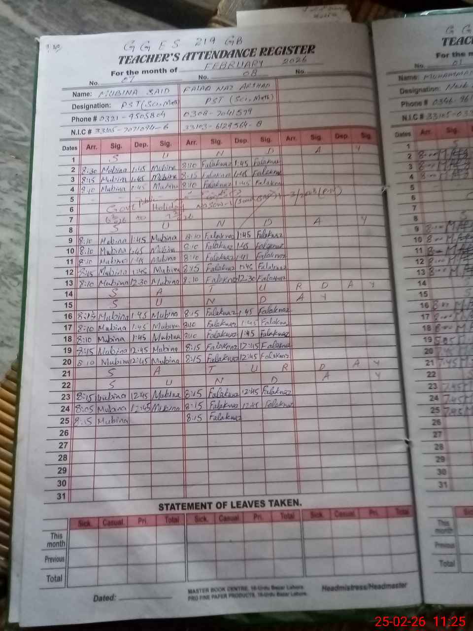 | Name: ZA**** YA**** Designation: (School Headmaster's/Headmistress's) SST (GENERAL) Phone/Cell Number: 03**** |