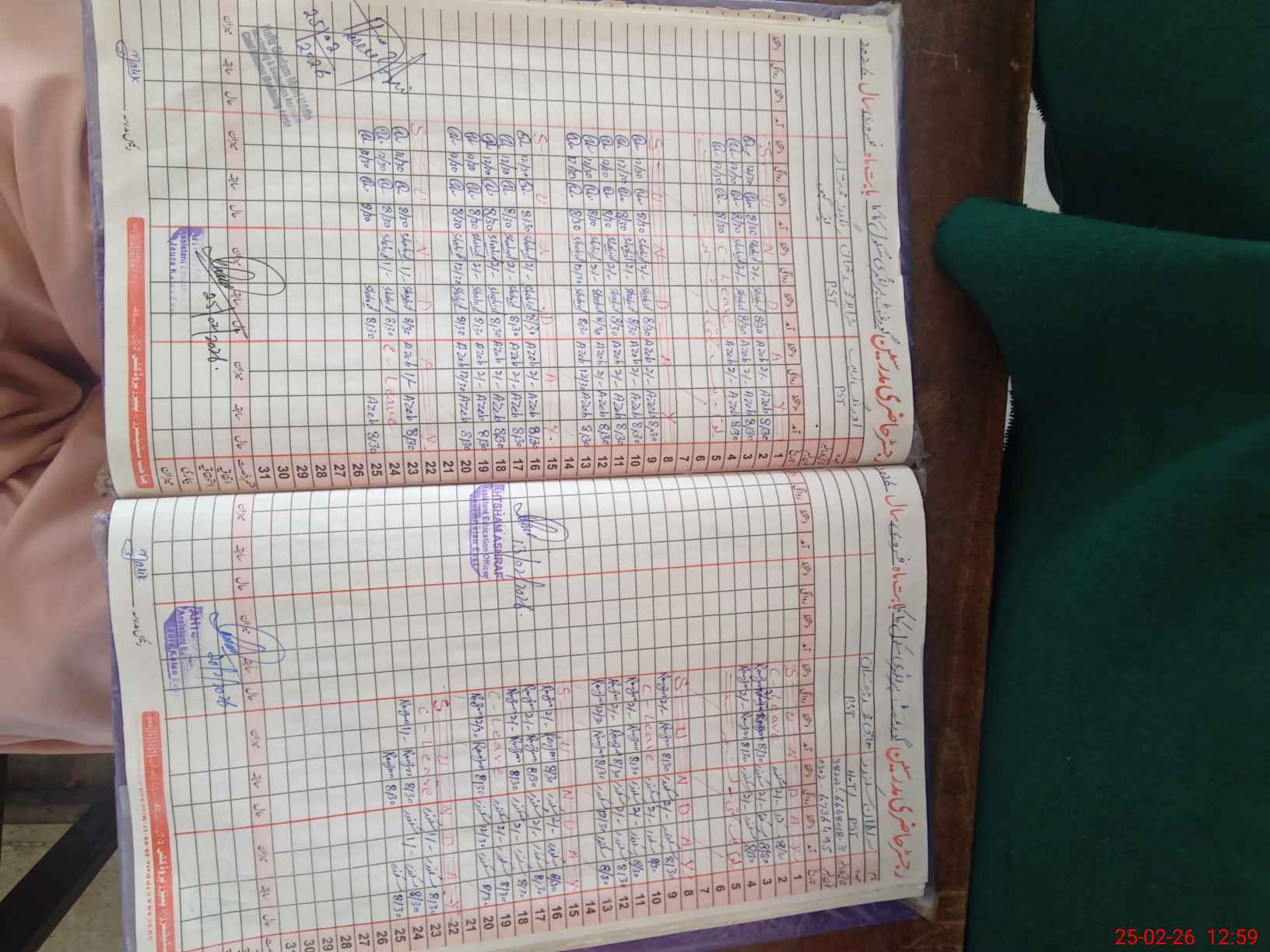 | CNIC | Full Name | Designation | R/C | Absence during last cal. month |