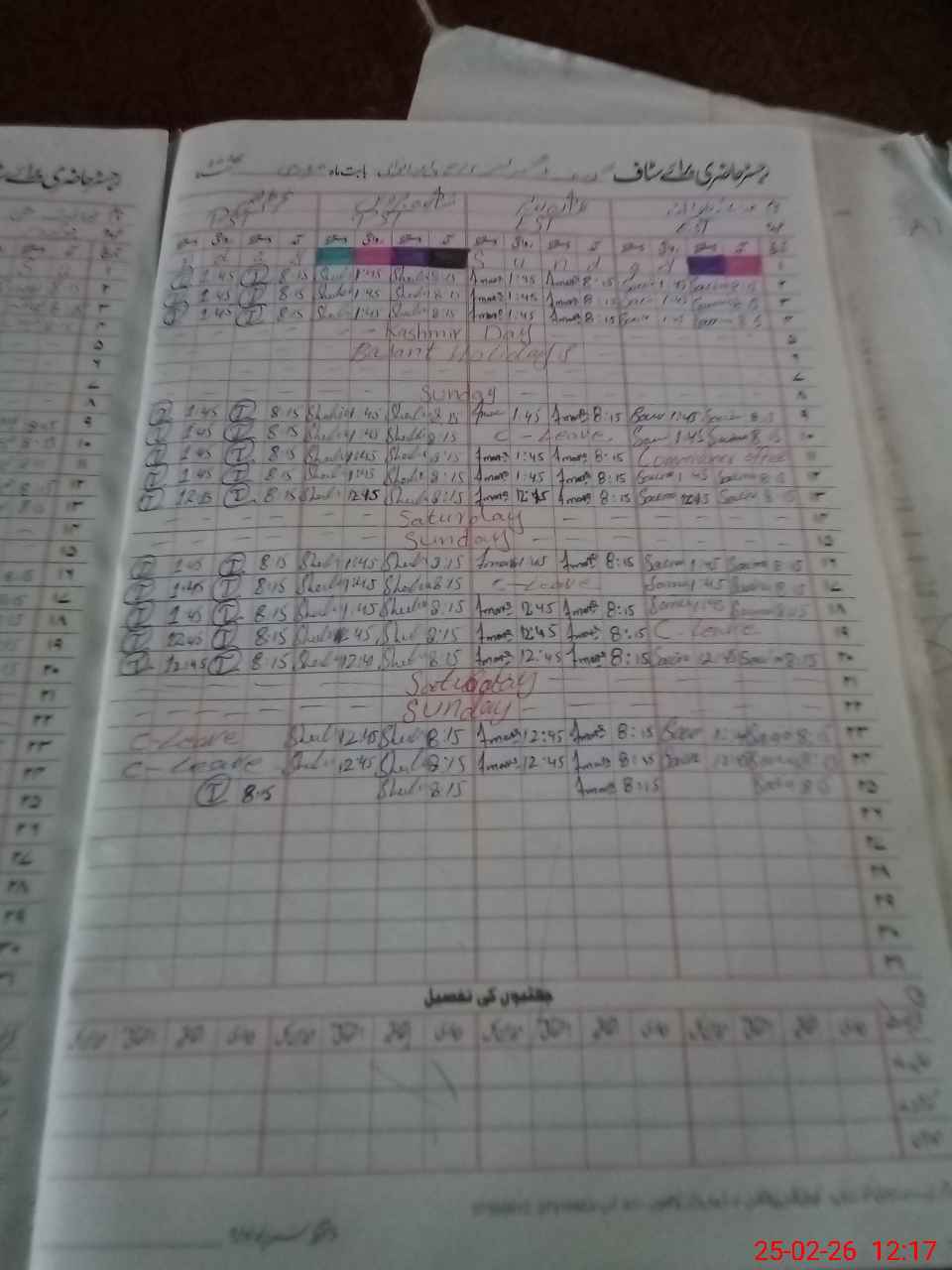 | CNIC | Full Name | Designation | R/C | Absence During Last Calender Month |