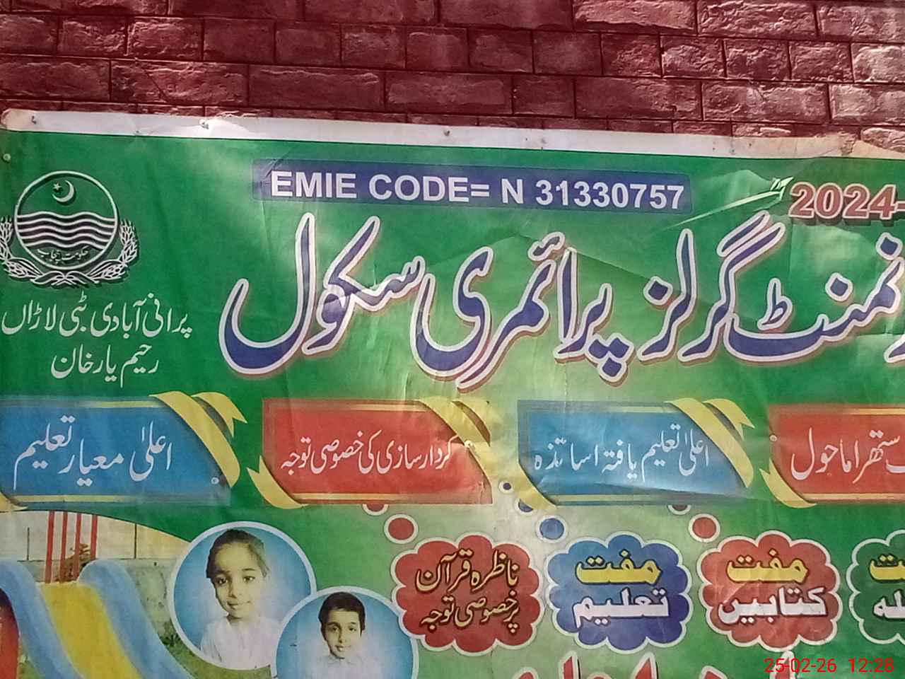 | District: RAHIMYAR KHAN | Tehsil: RAHIMYAR KHAN | Markaz: MUSLIM ABAD-FEMALE | Level: Primary | |