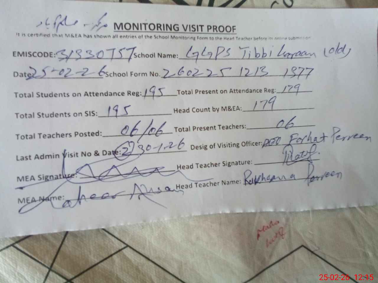 | Monitoring Date: 25-02-2026 | Start Time: 25-02-2026 11:50 AM | End Time: 25-02-2026 12:29 PM | Name of MEA: Za**** Ah**** | |