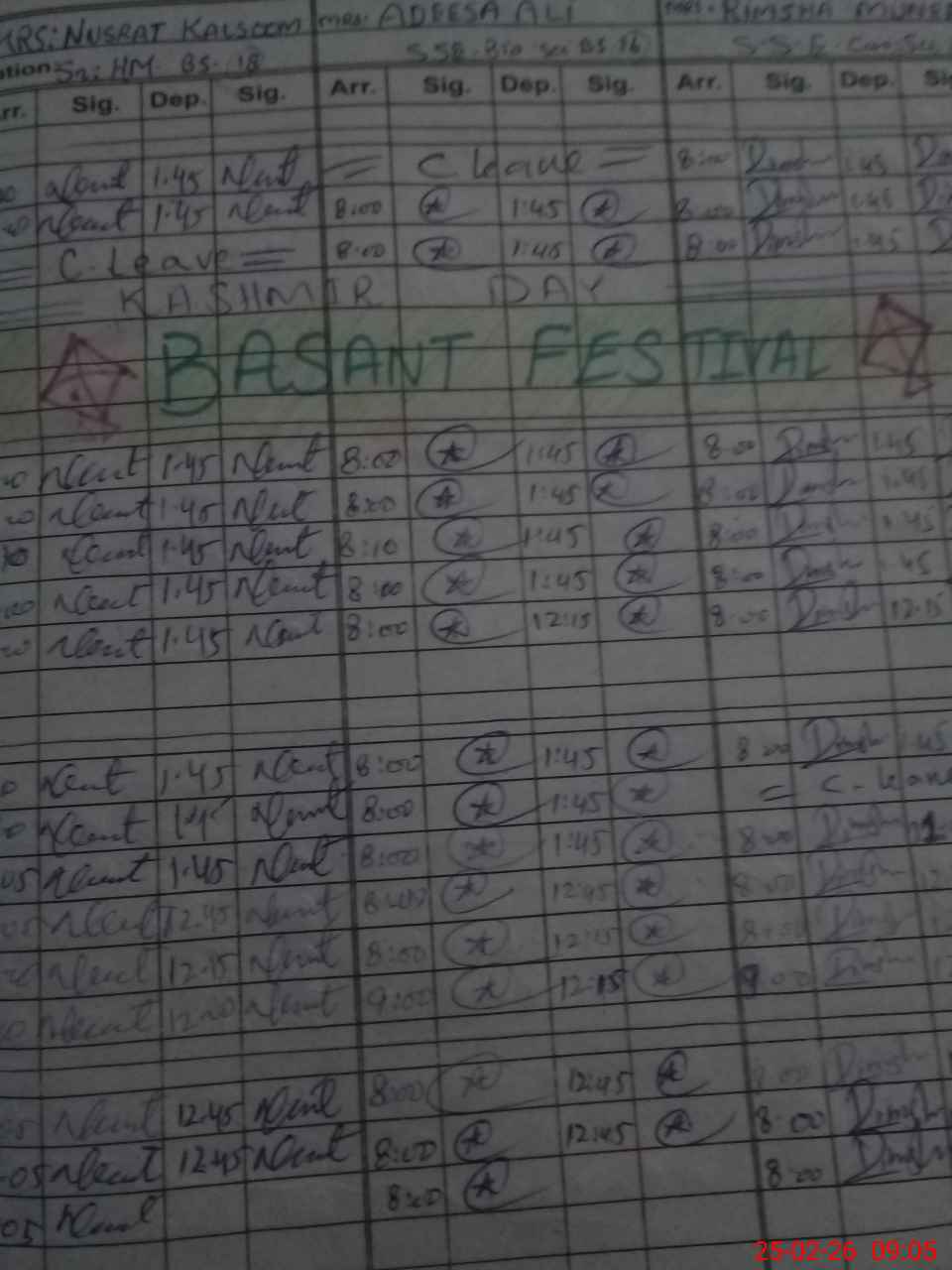 | CNIC | Full Name | Designation | R/C | Absence During Last Calender Month |