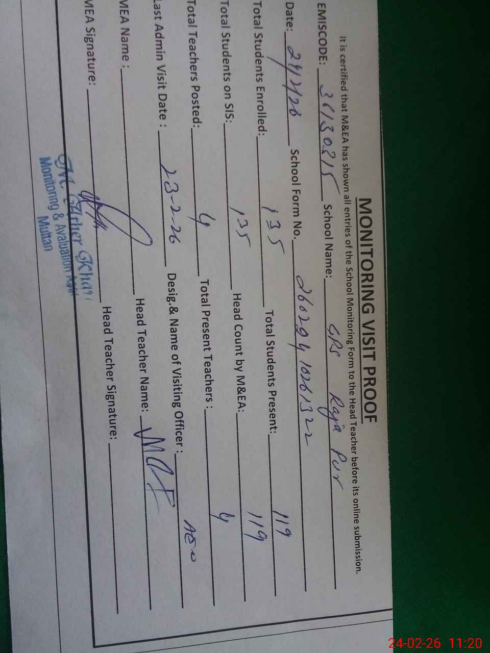 | EMIS Code: 36130315 | Name of School: GPS RAJA PUR P/O MUZAFARABAD CHAH AMIR SHAH WALA | |||