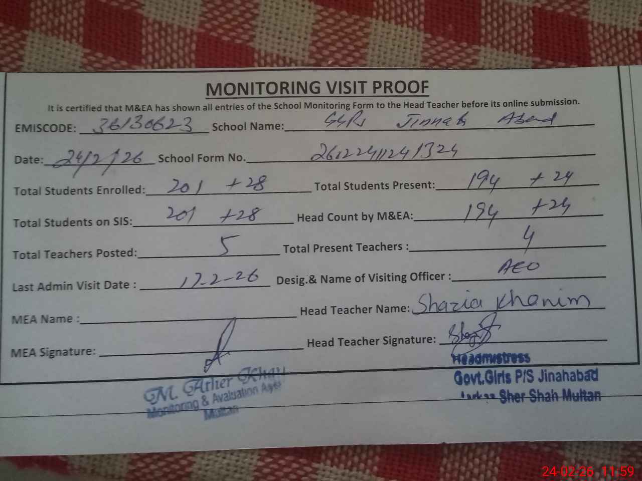 | EMIS Code: 36130623 | Name of School: GGPS JINAH ABAD | |||