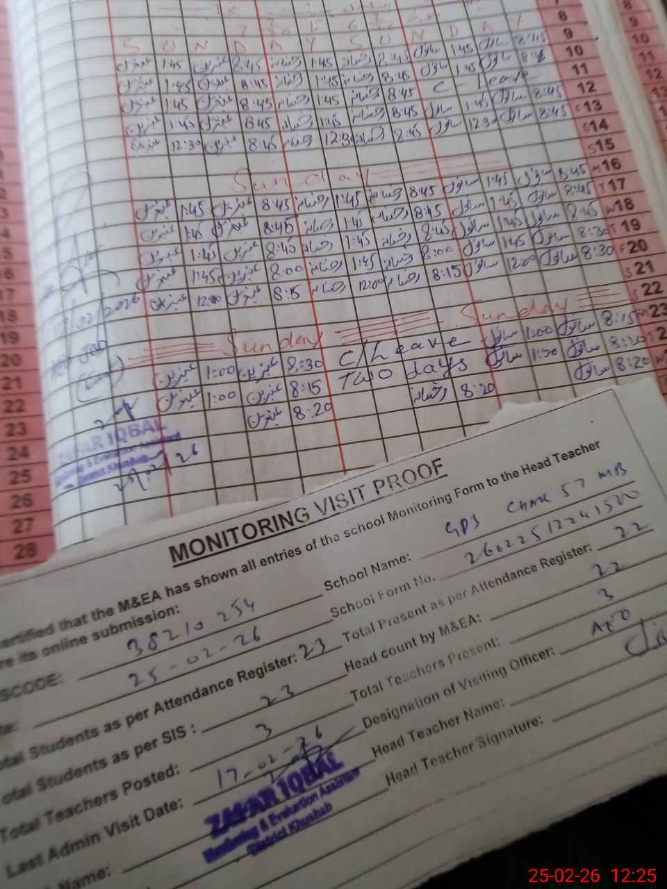 | Remarks (Use Separate Page if Required): last visit AEO 17 Feb 26 Total on register 23 Total on sis 23 | |||||