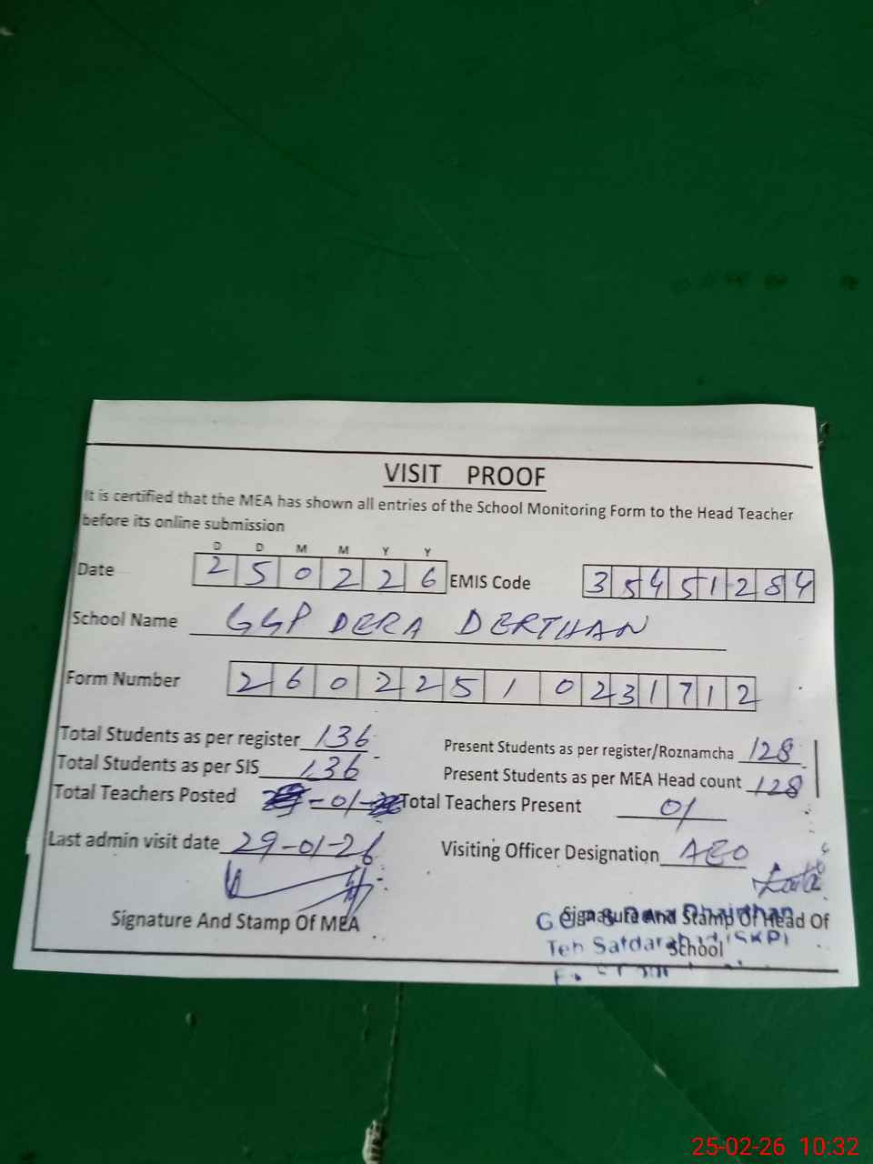 | EMIS Code: 35451284 | Name of School: GGPS DERA DHERTHAN | |||