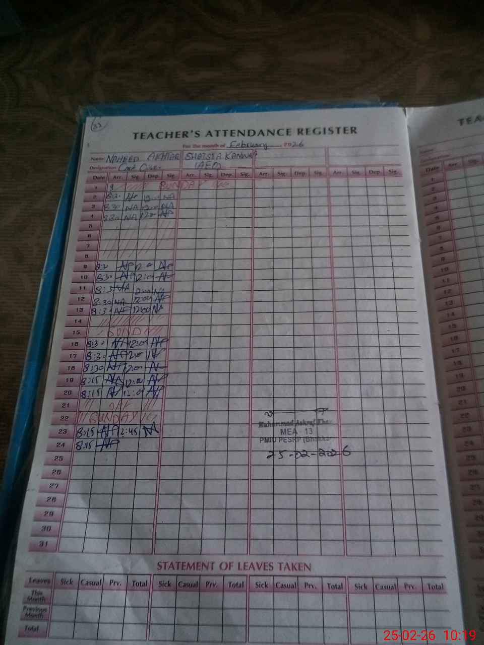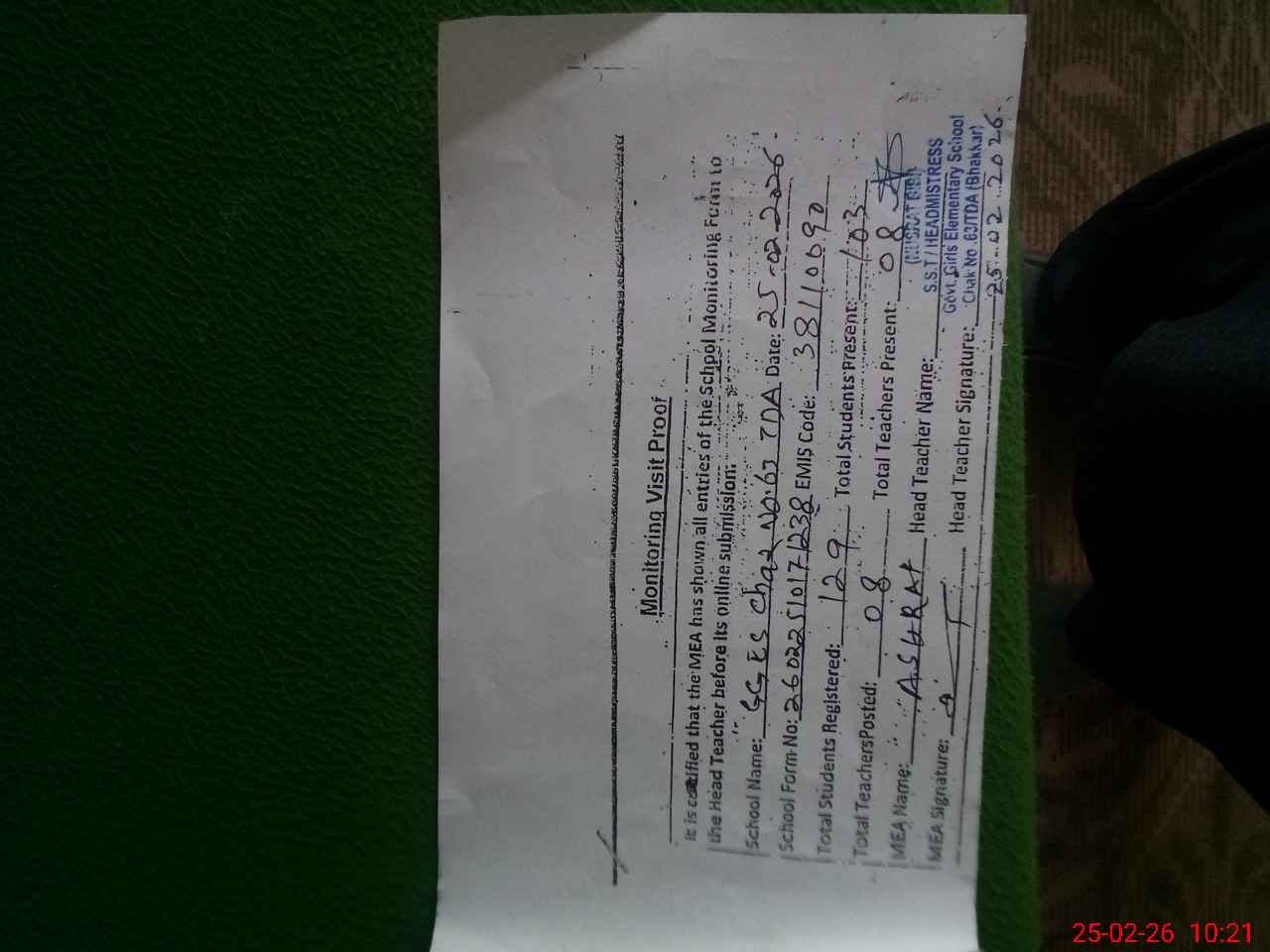 | Name: Nu**** Bi**** Designation: (School Headmaster's/Headmistress's) S.S.T.(arts Phone/Cell Number: 03**** |