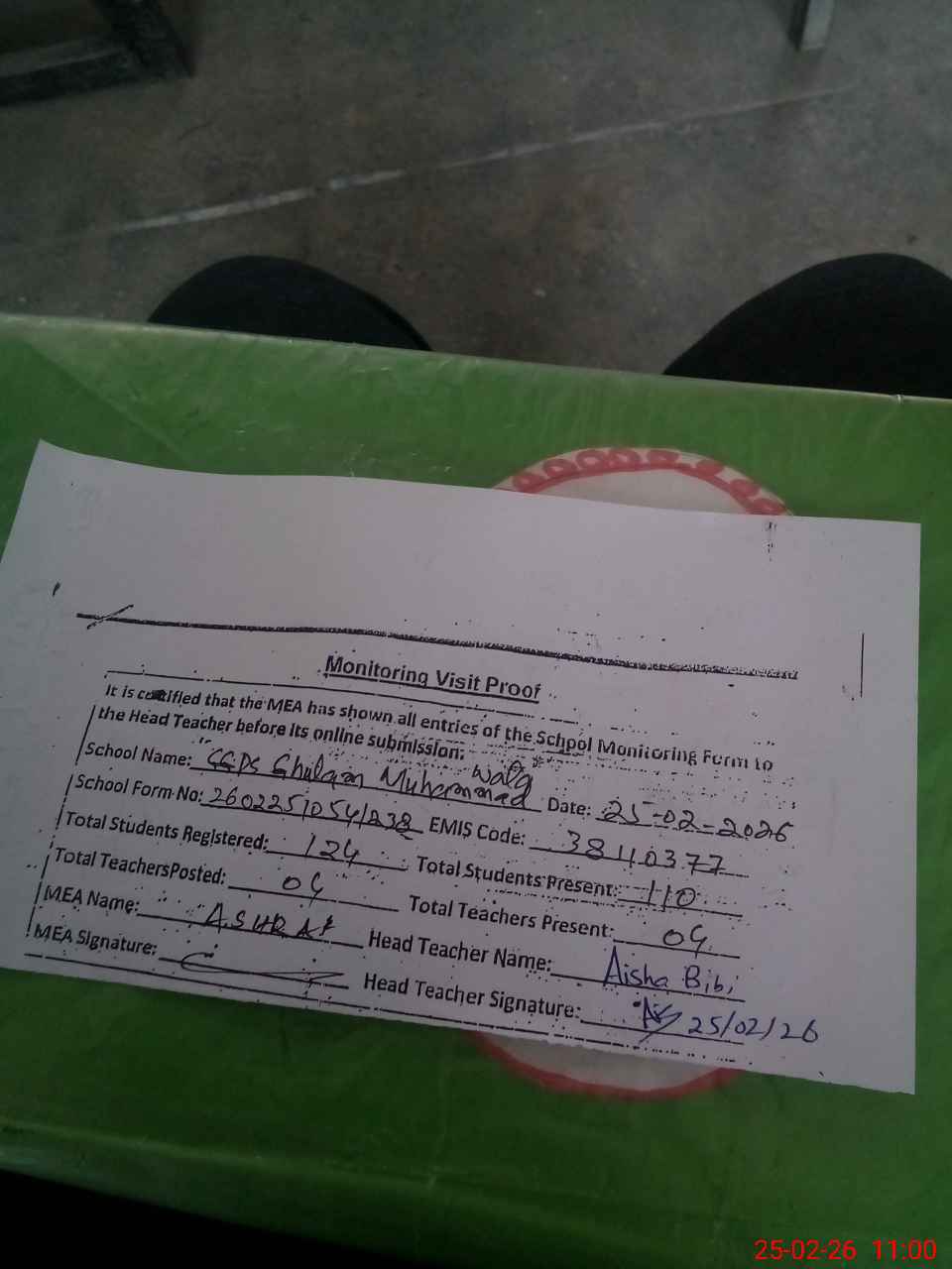 | EMIS Code: 38110377 | Name of School: GGPS GHULAM MUHAMMAD WALA | |||