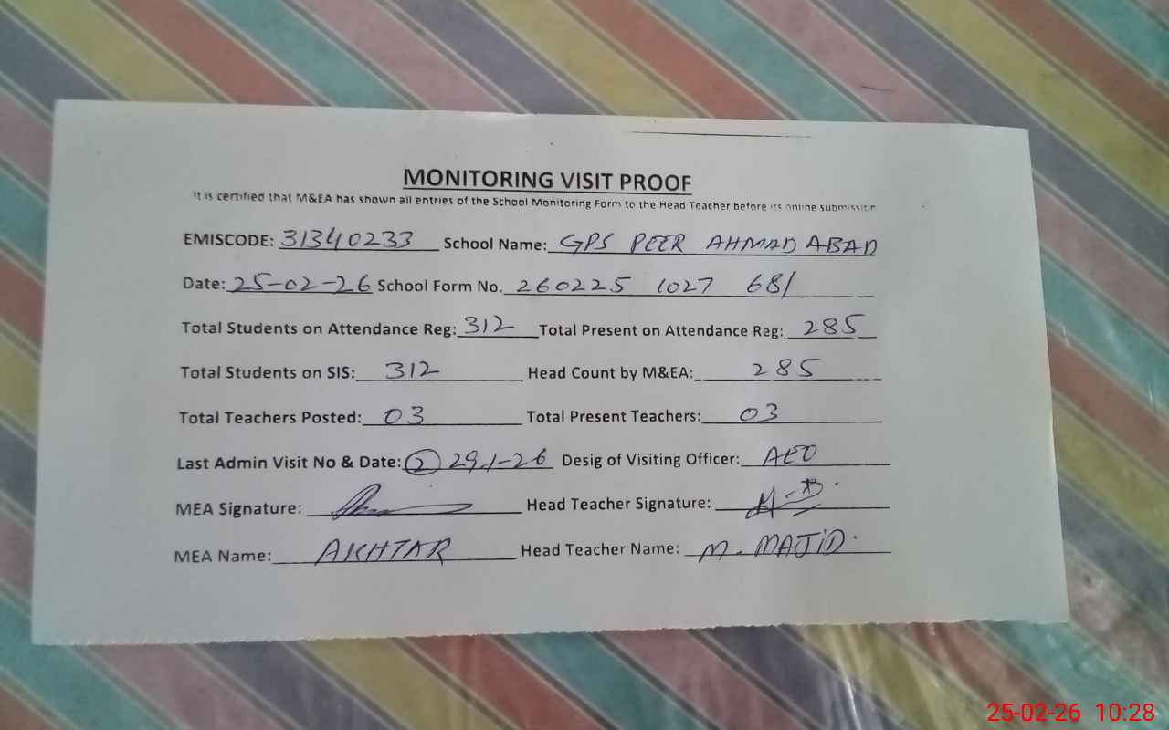| EMIS Code: 31340233 | Name of School: GPS PEER AHMAD ABAD | |||
