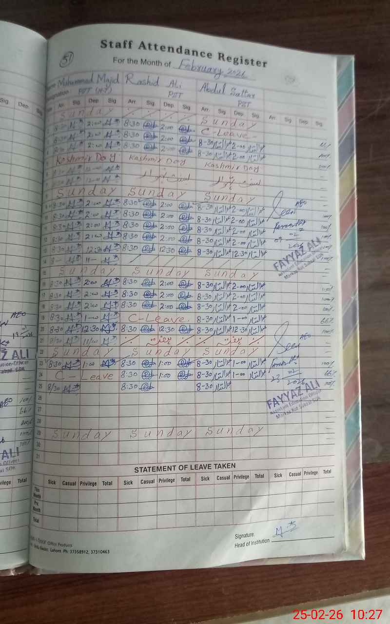 | Name: Mu**** Ma**** Designation: (School Headmaster's/Headmistress's) PST Phone/Cell Number: 03**** |