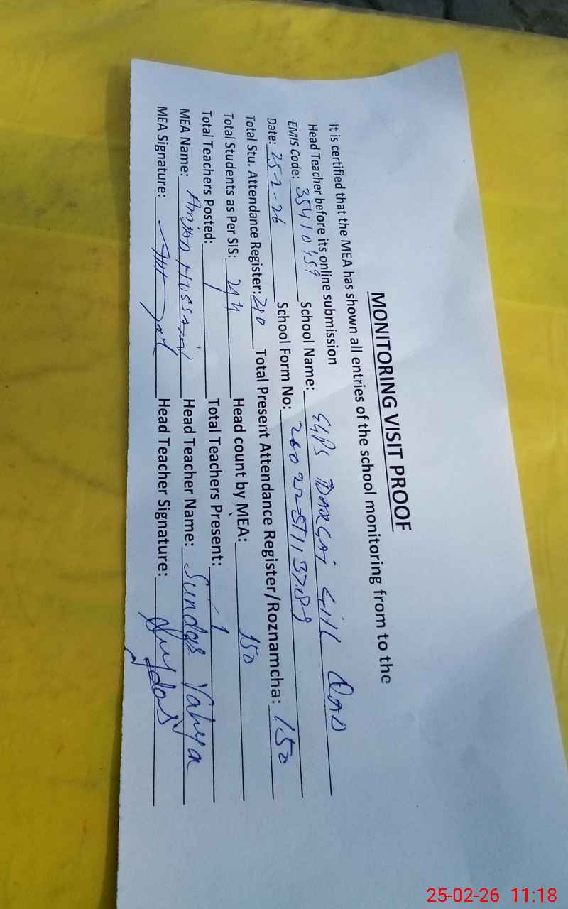 | Attendance Register | Head Teacher | MEA with School | Visit Proof |