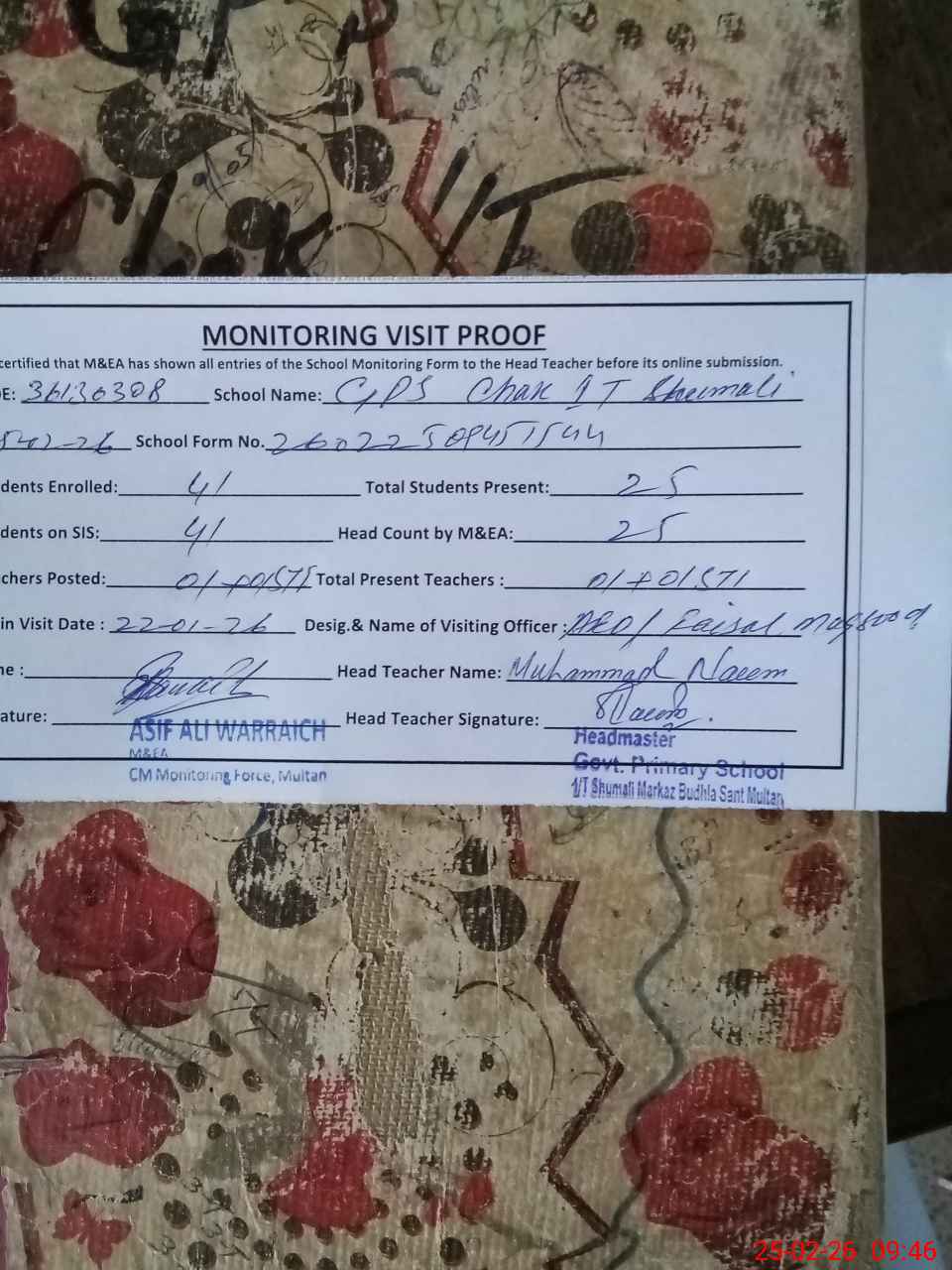 | Certified that this School was Inspected by the Undersigned MEA/DMO Today and the Information Stated Above is as Per Record. | |||||
