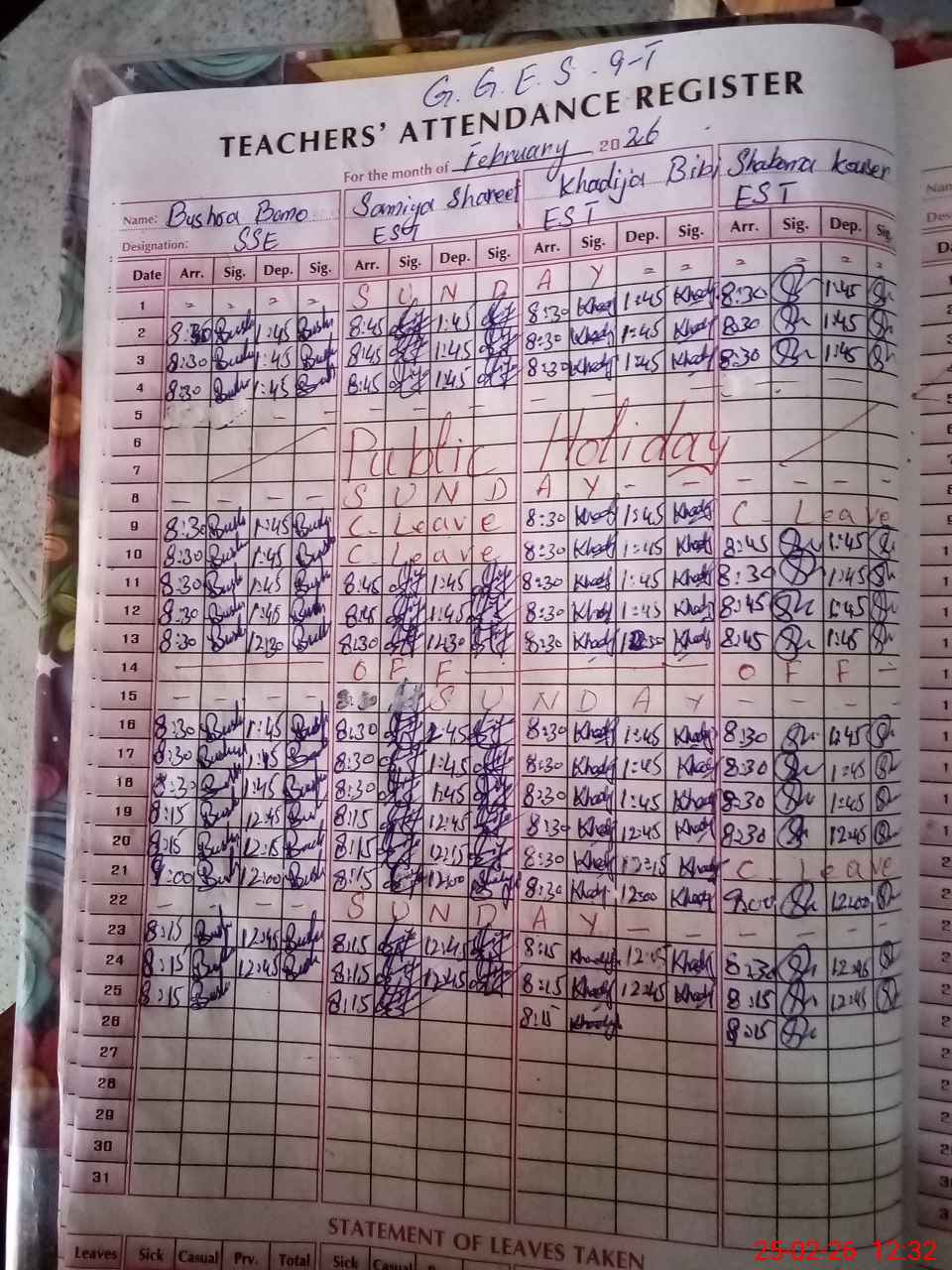 | 36**** | Su**** Ya**** | PST Science/Maths | Regular | 17 | 0 | 0 | 17 | 0 | 0 | 0 | 0 | 0 | Maternity |