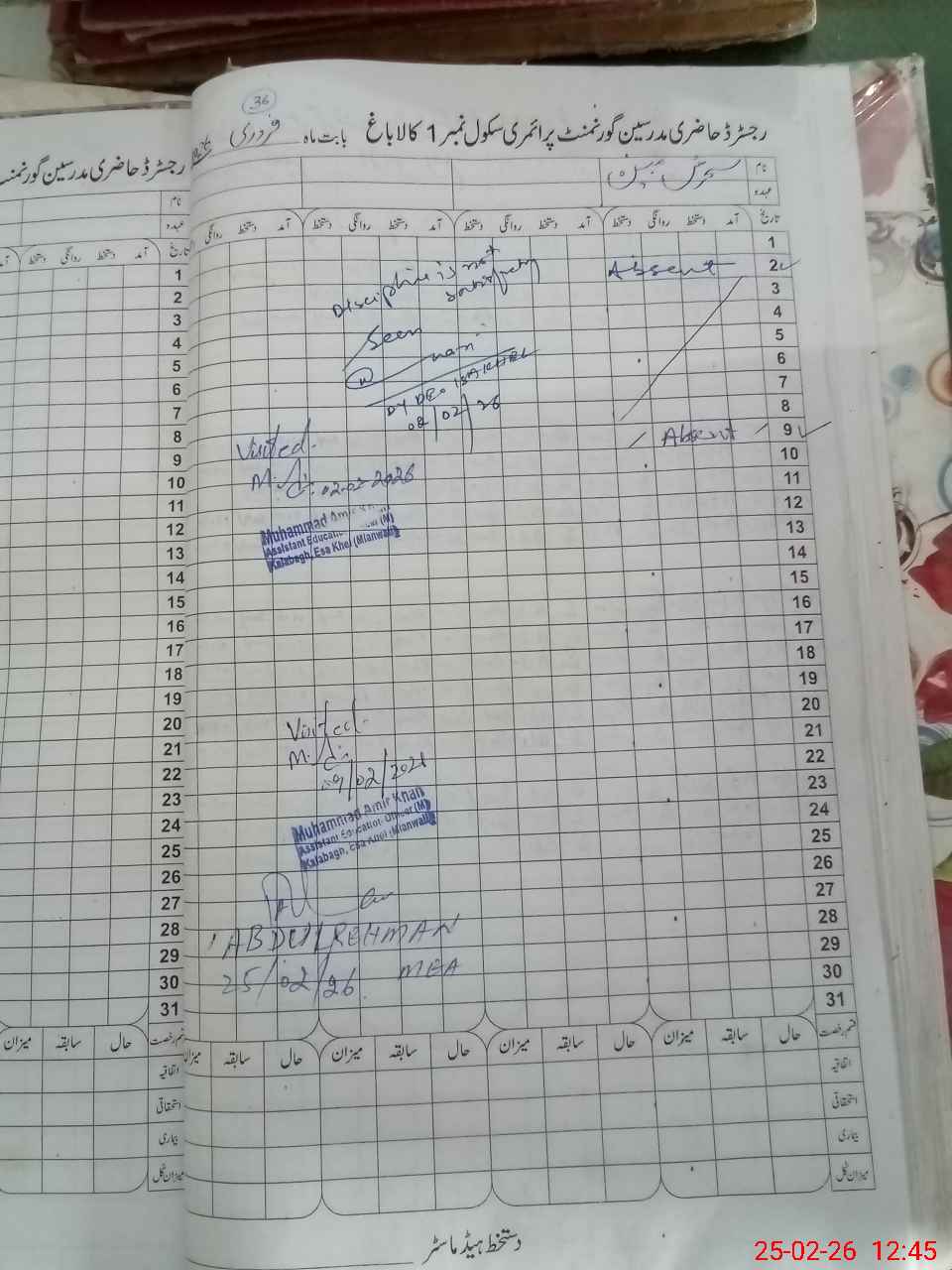 | EMIS Code: 38310132 | Name of School: GPS NO. 1 KALA BAGH | |||