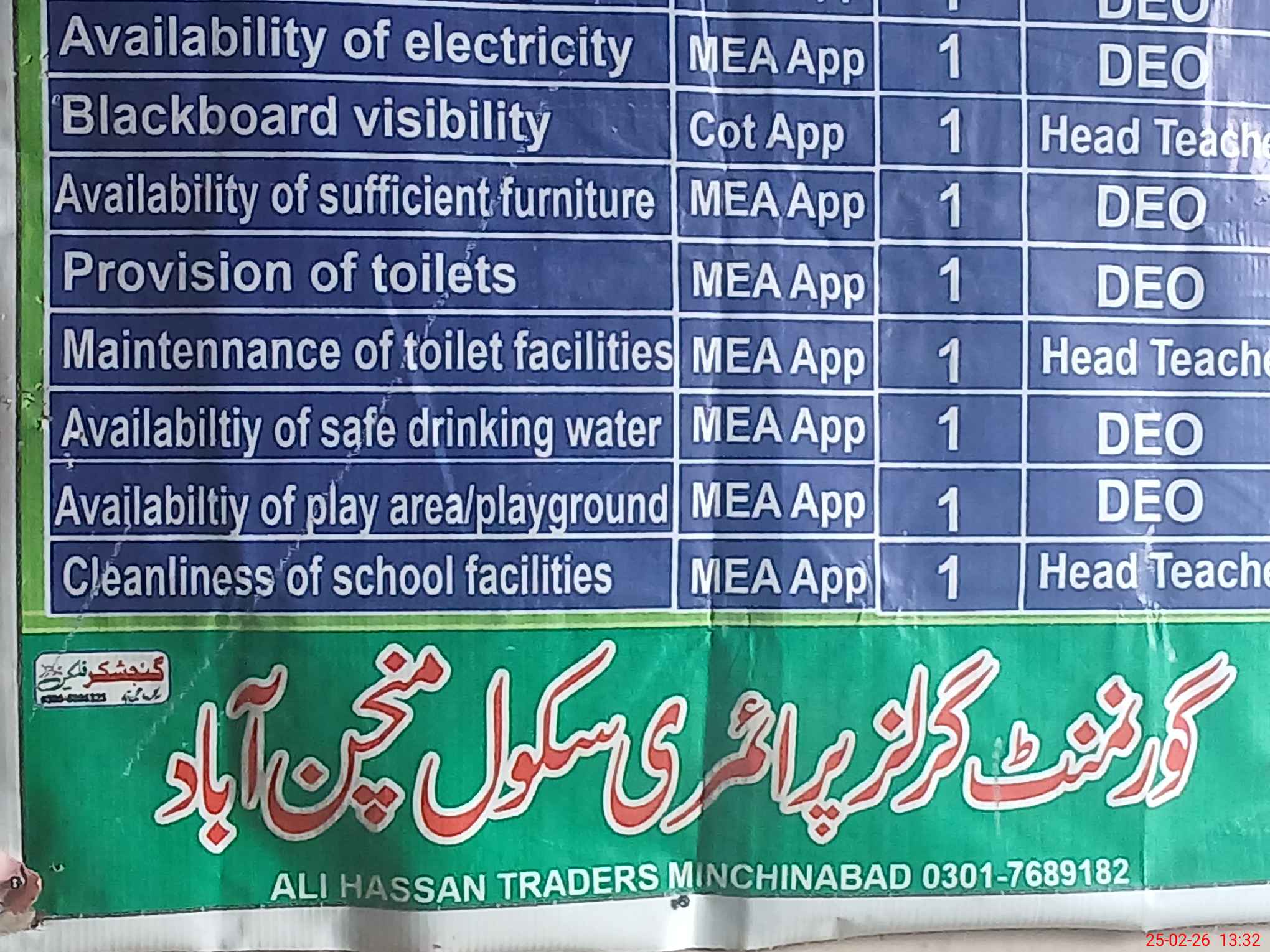 | District: BAHAWALNAGAR | Tehsil: MINCHINABAD | Markaz: MCD 01-FEMALE | Level: Primary | |