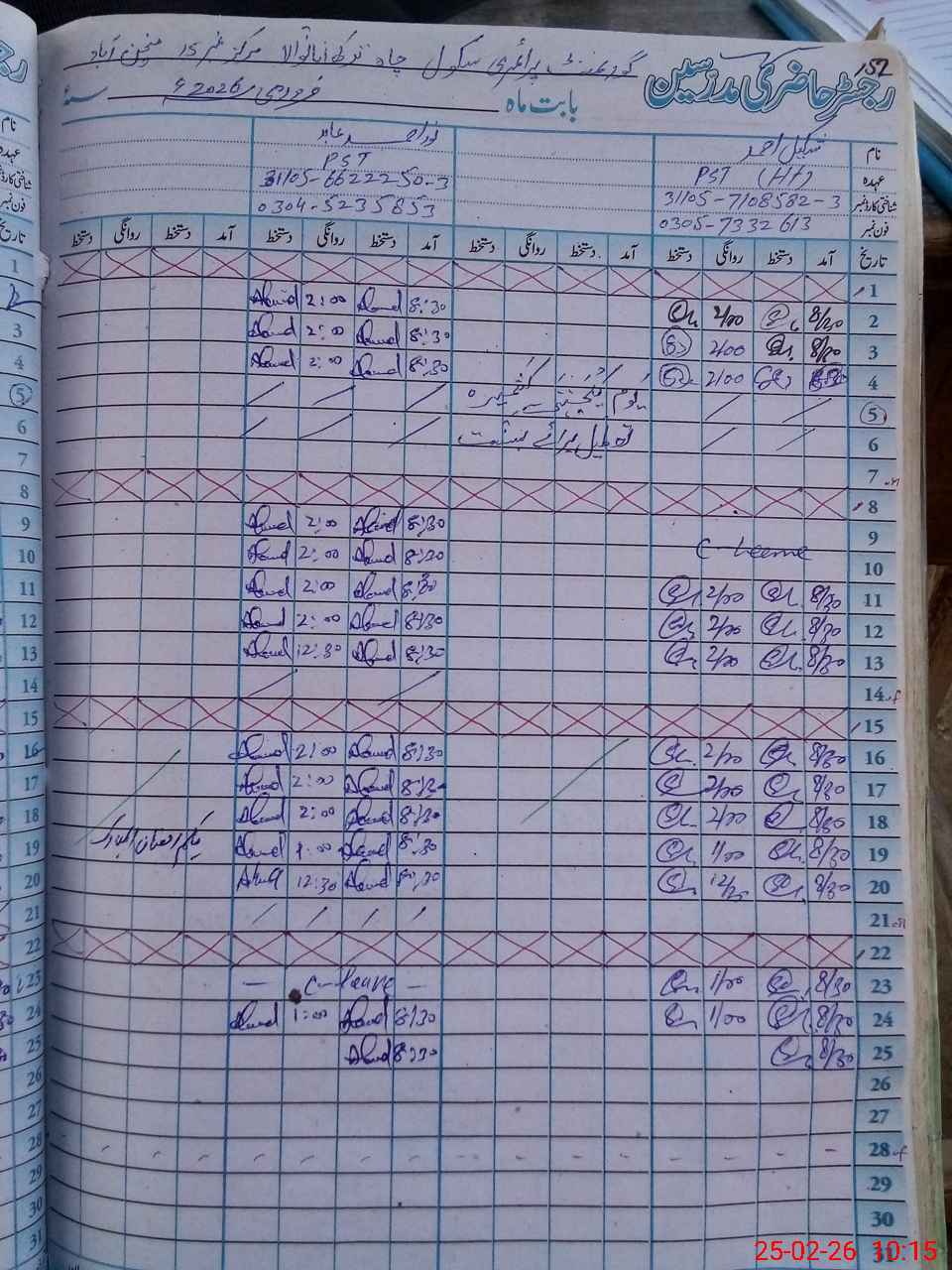 | Name: Sh**** Ah**** Designation: (School Headmaster's/Headmistress's) PST Phone/Cell Number: 03**** |