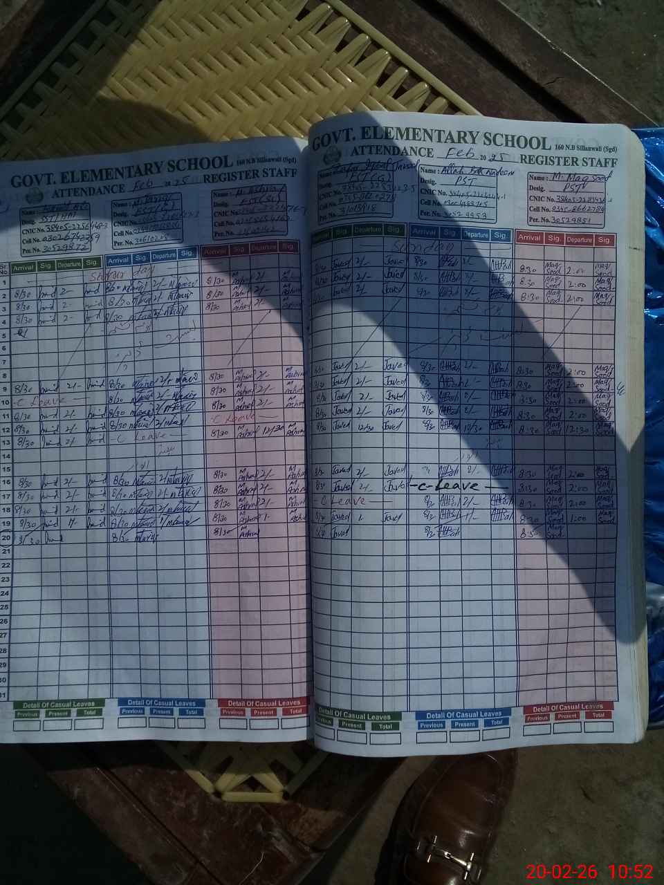 | CNIC | Full Name | Designation | R/C | Absence during last cal. month |
