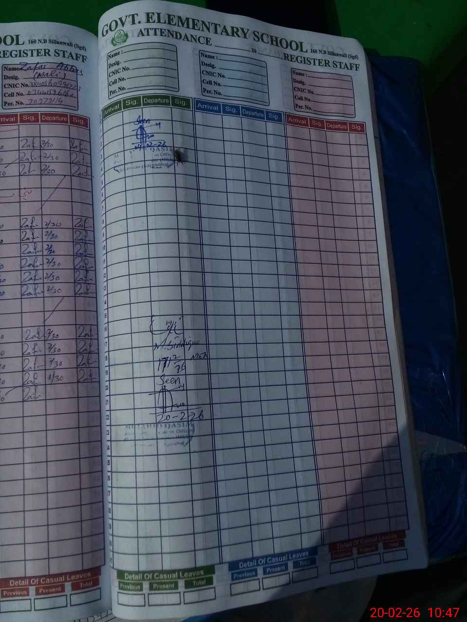| CNIC | Full Name | Designation | R/C | Absence During Last Calender Month |