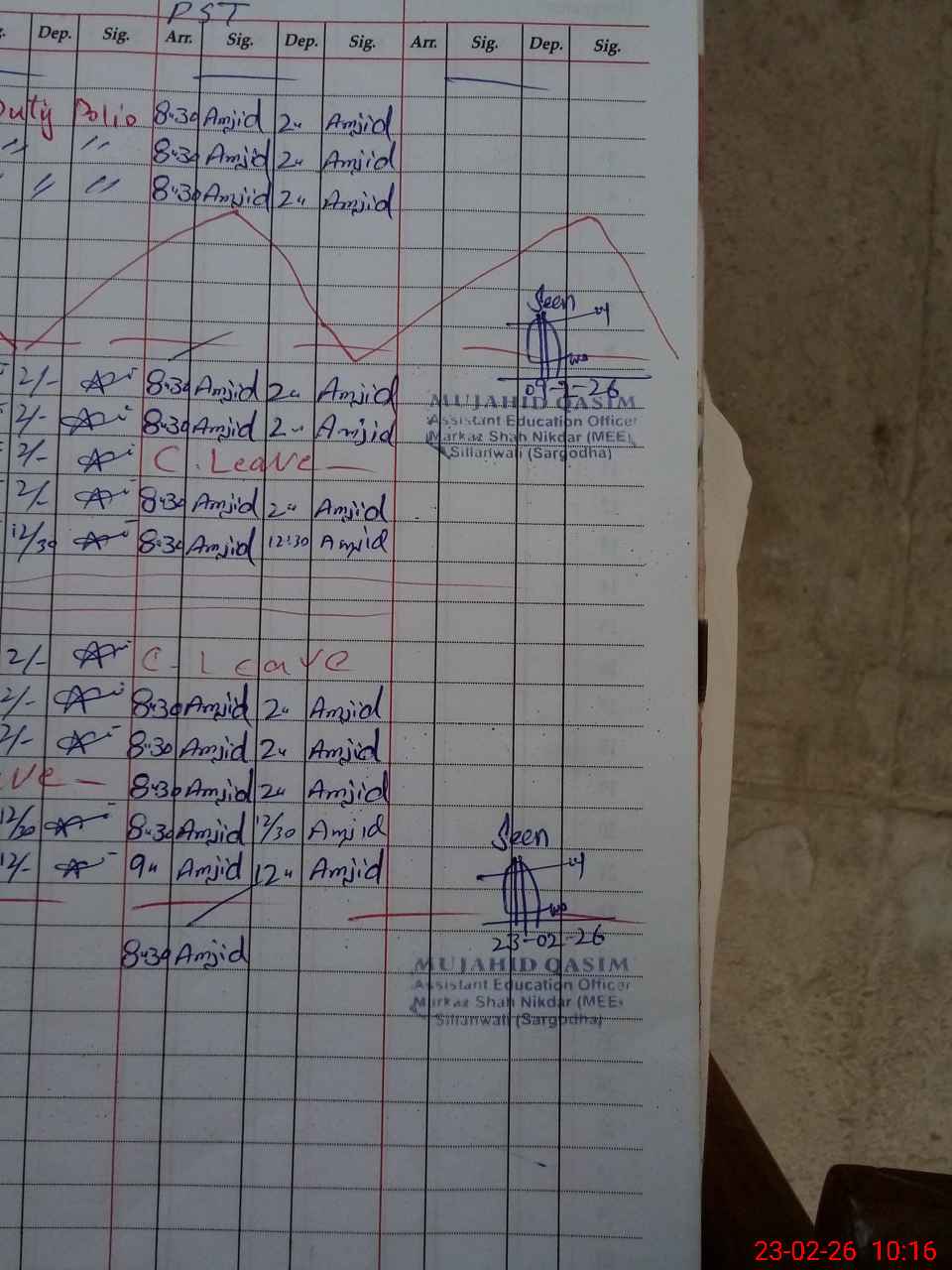| CNIC | Full Name | Designation | R/C | Absence During Last Calender Month |