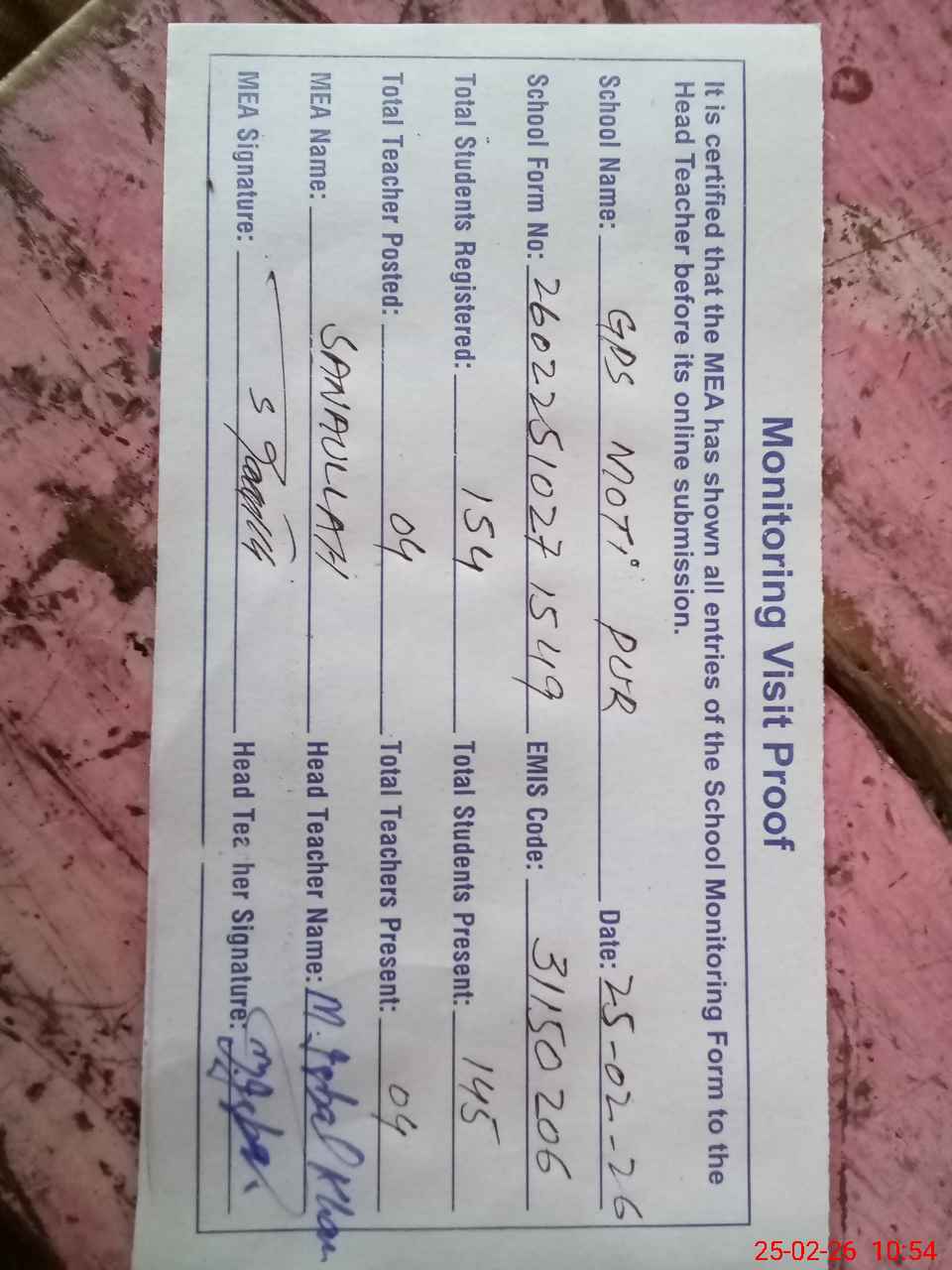 | EMIS Code: 31150206 | Name of School: GPS MOTI PUR | |||
