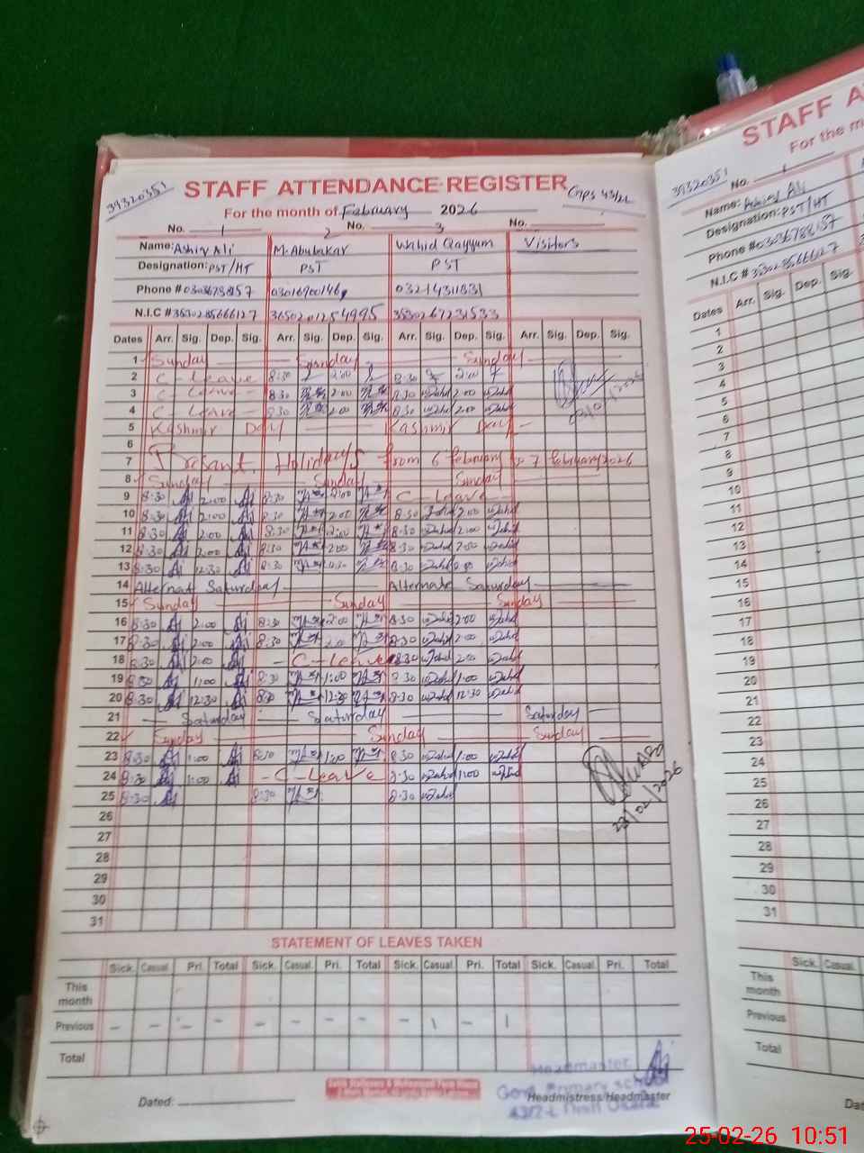 | Name: As**** Al**** Designation: (School Headmaster's/Headmistress's) PST Phone/Cell Number: 03**** |