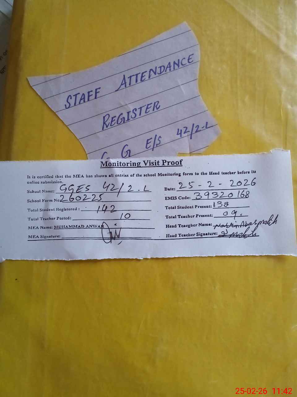 | EMIS Code: 39320168 | Name of School: GGES CHAK NO. 42/2-L | |||
