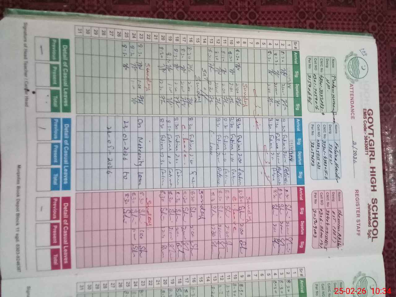 | Name: NO**** FA**** Designation: (School Headmaster's/Headmistress's) SST (SCI) Phone/Cell Number: 03**** |
