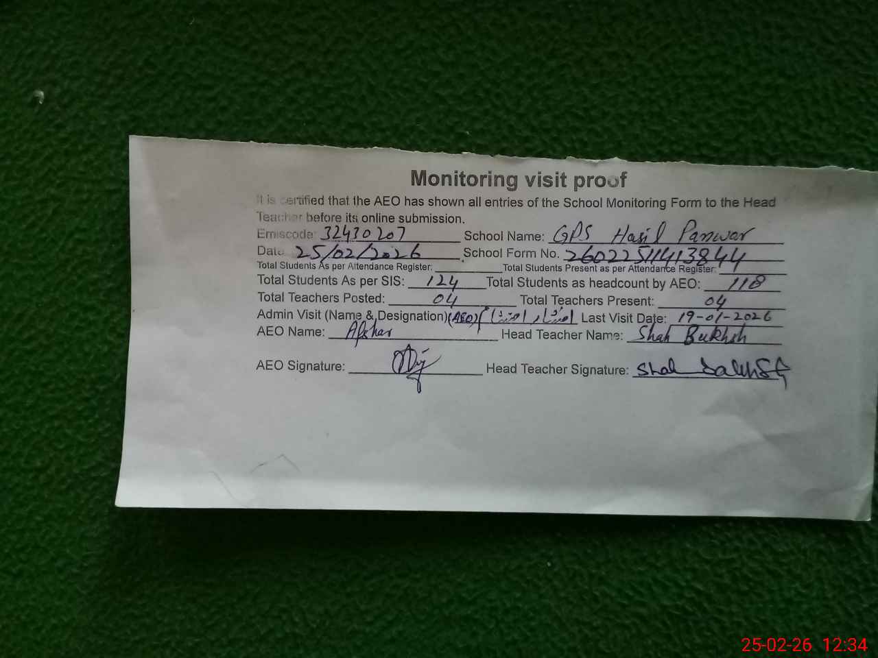 | EMIS Code: 32430207 | Name of School: GPS HASIL PANWAR | |||