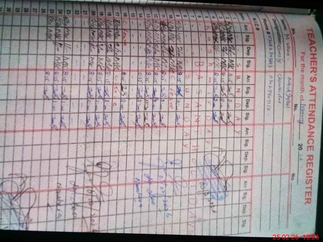 | Name: Mu**** As**** Designation: (School Headmaster's/Headmistress's) SST General Phone/Cell Number: 03**** |